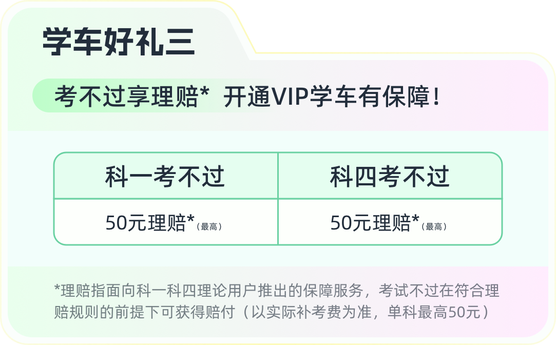 科一科四考不过享理赔最高100元,学车更有保障,所以宝子们就安心备考吧。