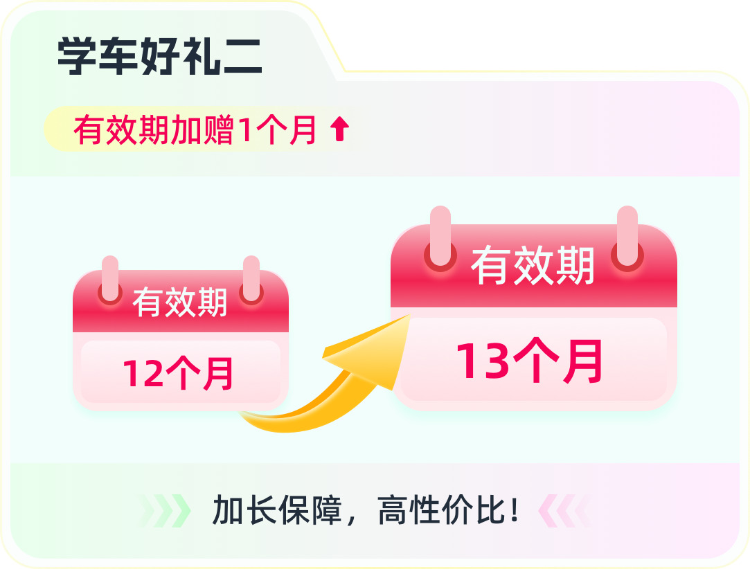 全科目vip有效期加赠一个月,从原来的12个月有效期升级为13个月,加长保障,性价比真的很高哦。