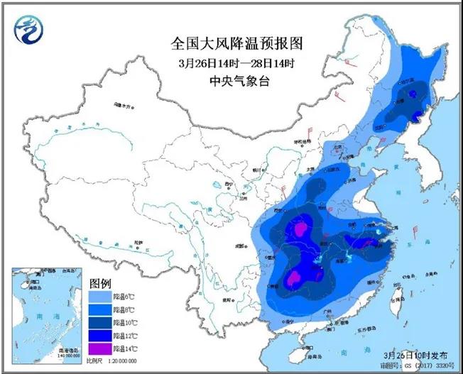 中央气象台发布预警:受强冷空气影响,我国将出现大范围大风降温天气,在北方,尤其是华北部分地区,今天的最高气温已从前几日的20℃降至10℃左右。明天,这股冷空气将抵达南方并迅速蔓延,不少地区的最高气温将从20℃、25℃一下降至10℃,完全是“腰斩式”“跳崖式”降温!