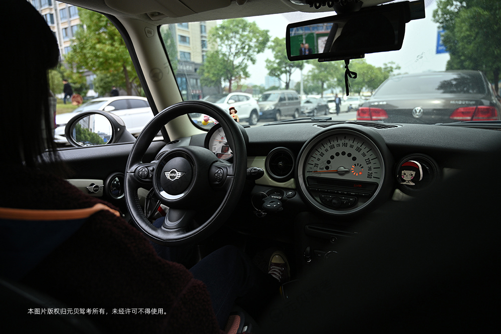 2、根据车尾行进方向的需要,用左手转动方向盘:如果车尾需要向右后方行进,则将方向盘向右转动;反之,则将方向盘向左转动。实际上这和汽车向前行驶时的转向操作是一致的,记住这点就不会因为打错方向而手忙脚乱了。