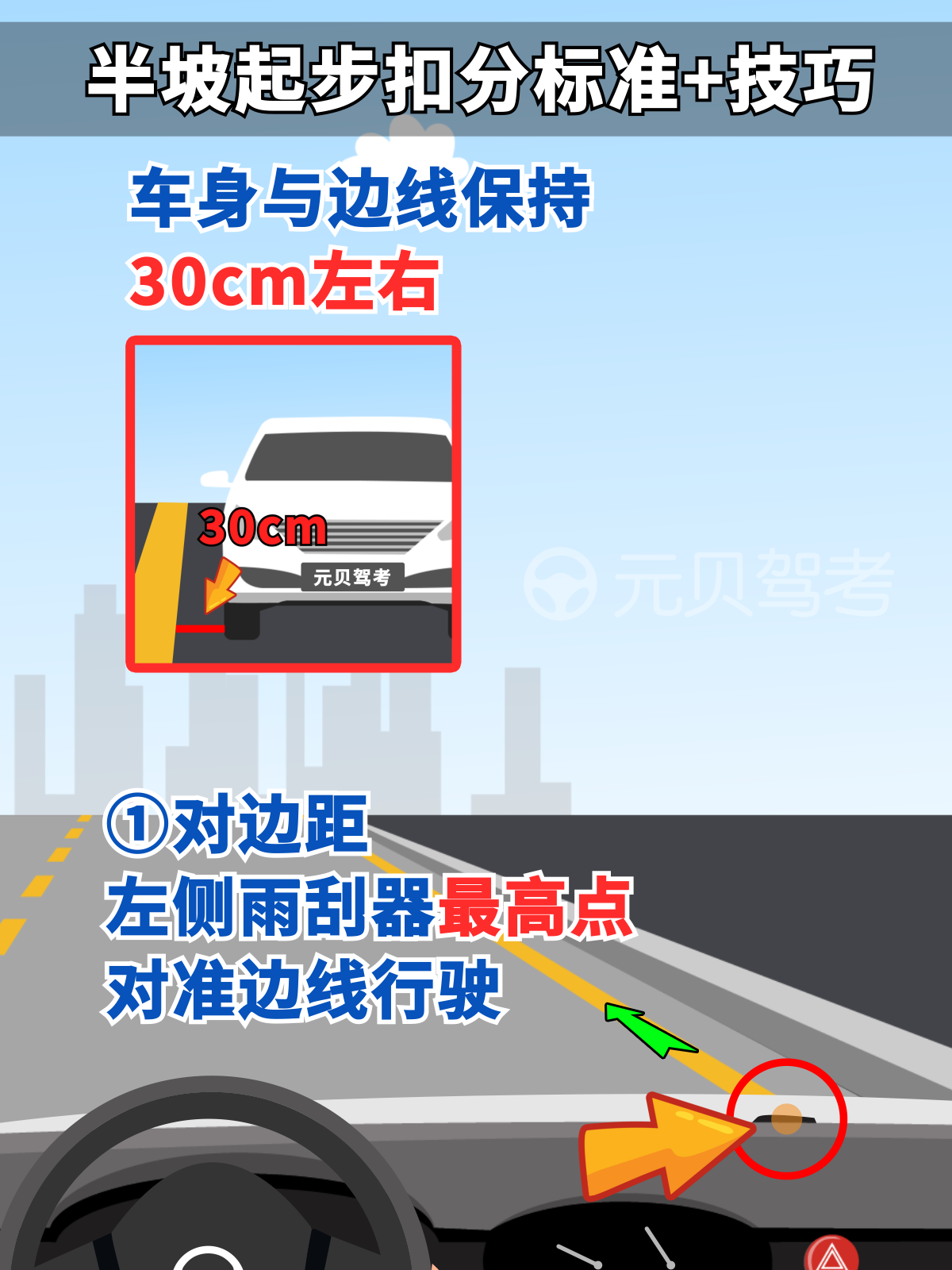 坡道定点停车,30公分不熄火、不后溜 扣分细则!完整版技巧请拿好,元贝驾考小编今天整理的这6张图一定要好好看。