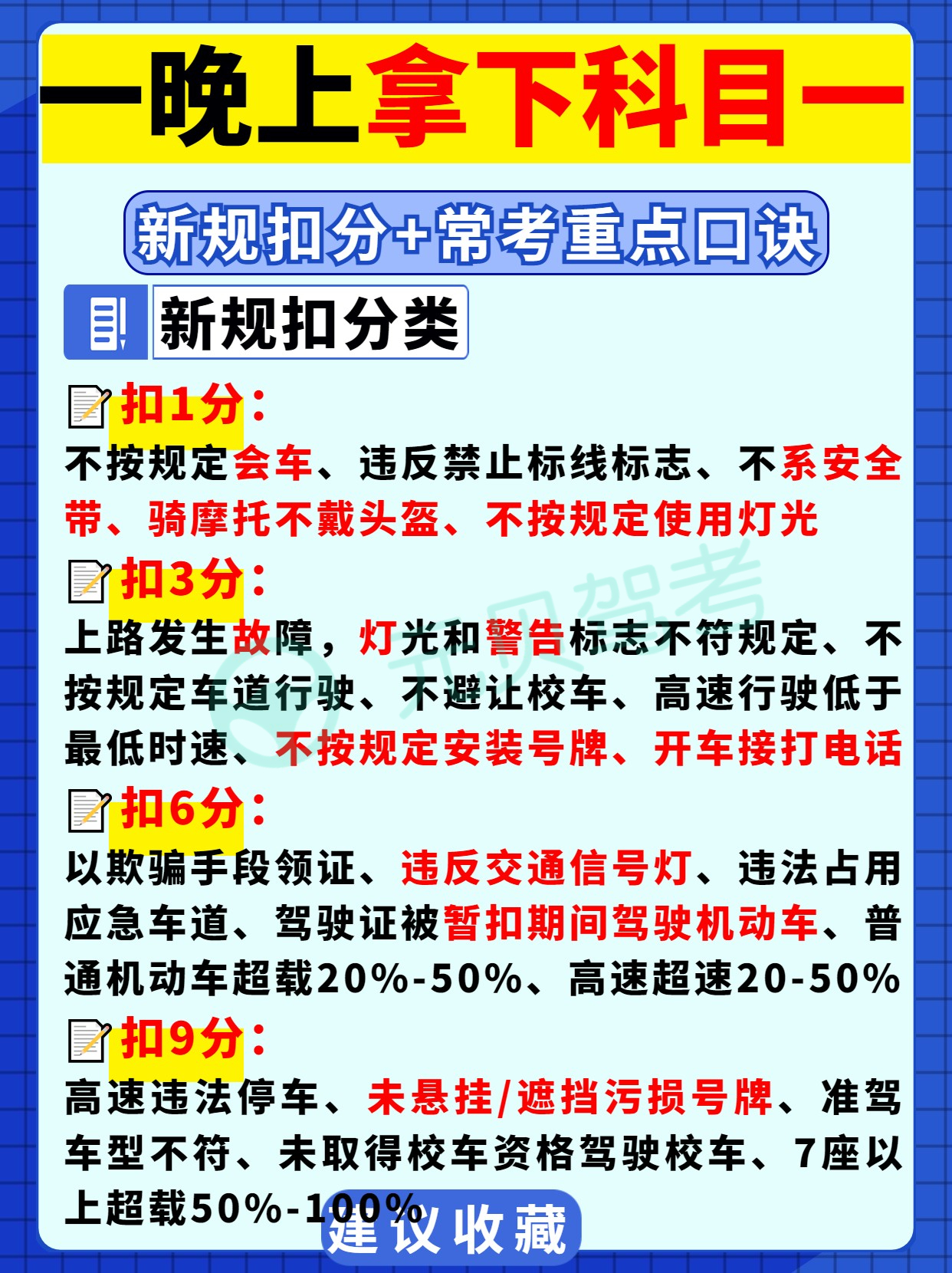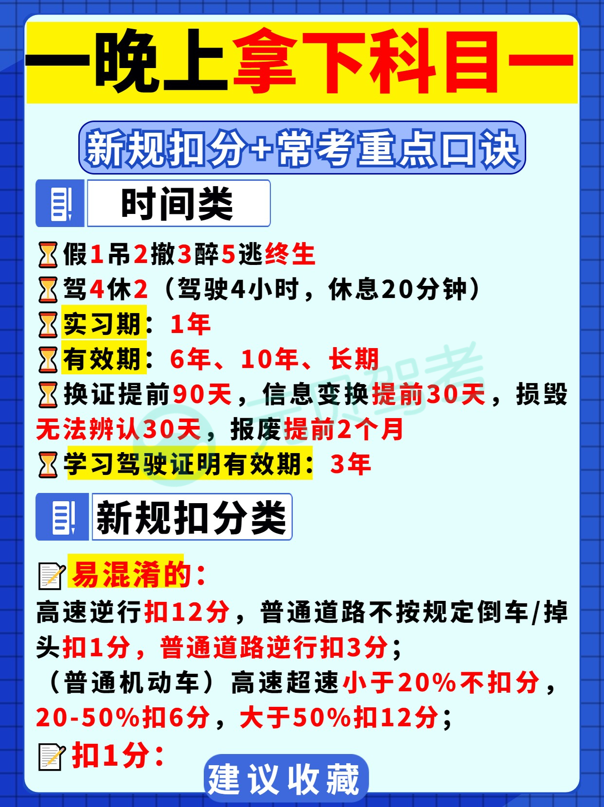 驾考科目一在很短的时间内想要一把过,要记住四个要点: