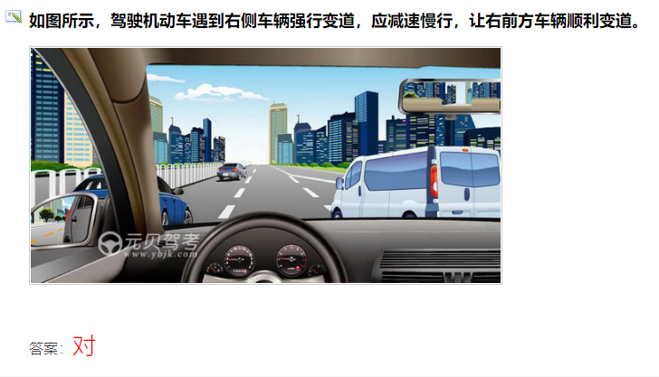 3、判断题出现:缓慢通过、平稳、减速、逐渐、降低车速等关键词,要求驾驶人缓慢行驶的,大部分为对。
