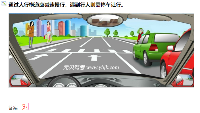 2、判断题出现:减速让行、停车让行、减速避让、礼让通行等关键词,意思为让对方车辆或行人先行的,大部分为对。