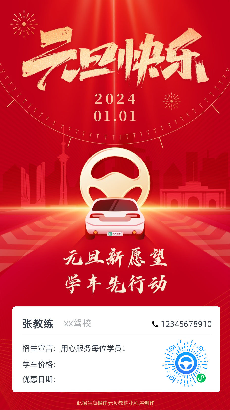 元贝教练app为广大教练定制了元旦招生海报