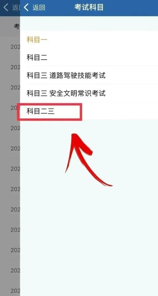 在考试预约科目里面是“科目二三”。该机制实施后,考生可同时约考科目二、三及安全文明常识,在准备充分的基础上,一天内即可完成考试并当场拿证。