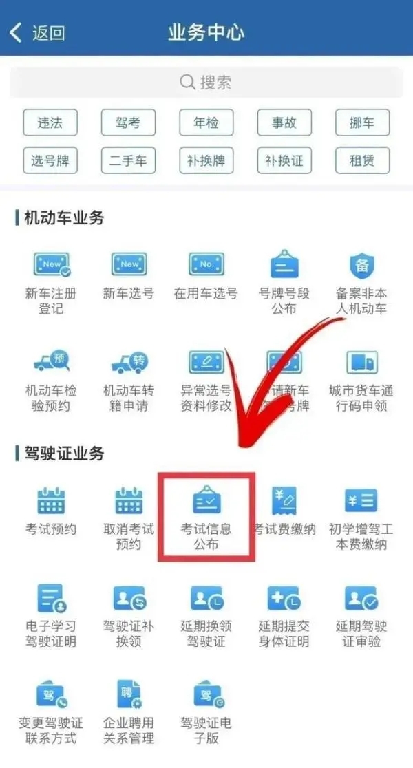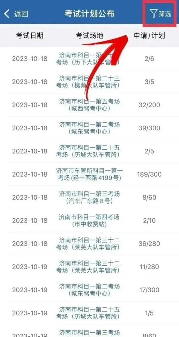 登录交管12123,在驾驶证业务栏中点击“考试信息公布”,进入后点击“本地考试计划公布”,进入后点击“筛选”、“考试科目”,选择“科目二三”即可选择合适的场次。