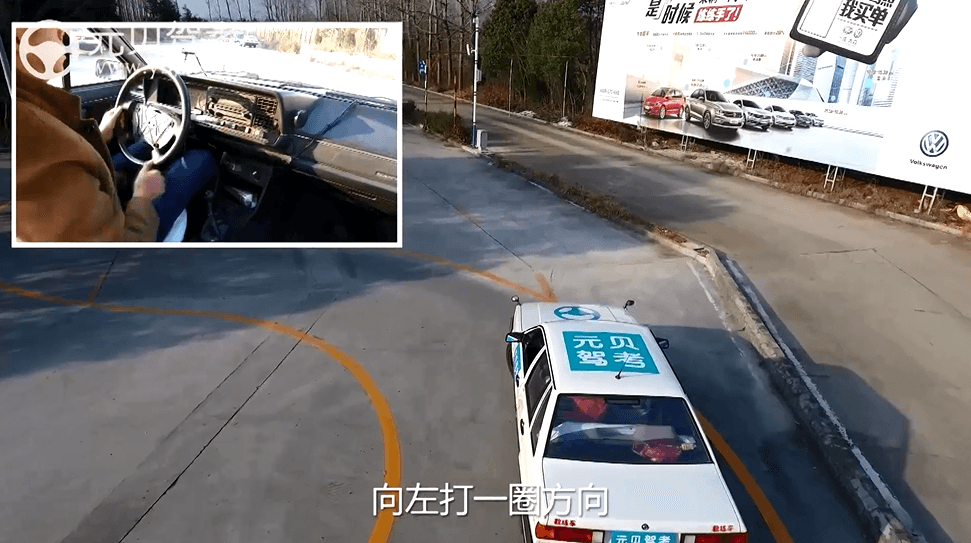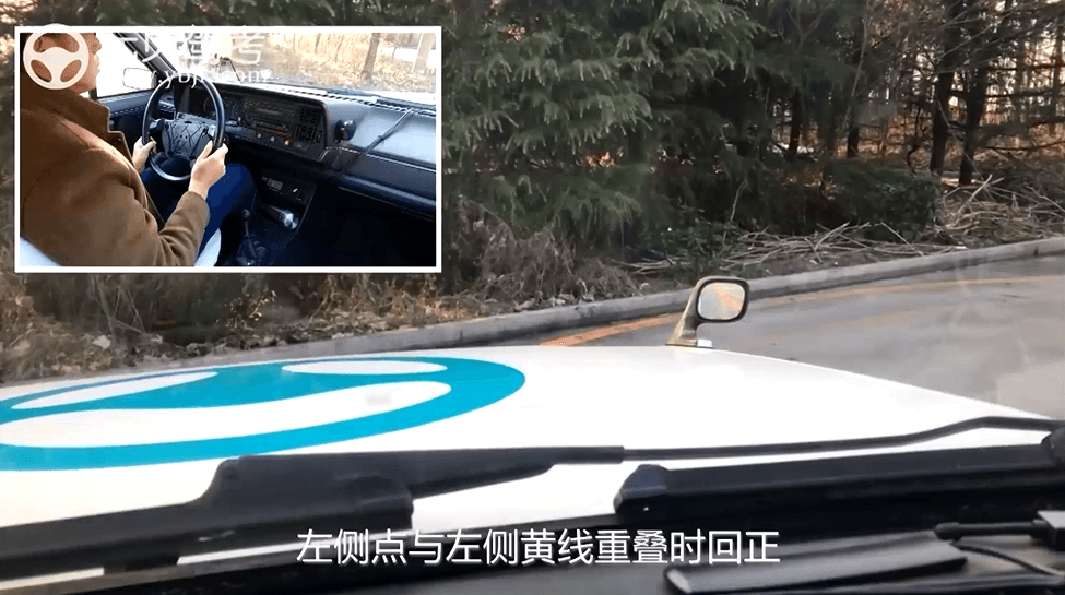这时候要求学员在方向打死的时候注意随时瞥两眼左侧后视镜,观察车轮与s弯黄色边线的距离,尽可能保证车轮距边线的距离在1指左右(后视镜视角),这样只要左侧不压线,右侧肯定也不会压线的。