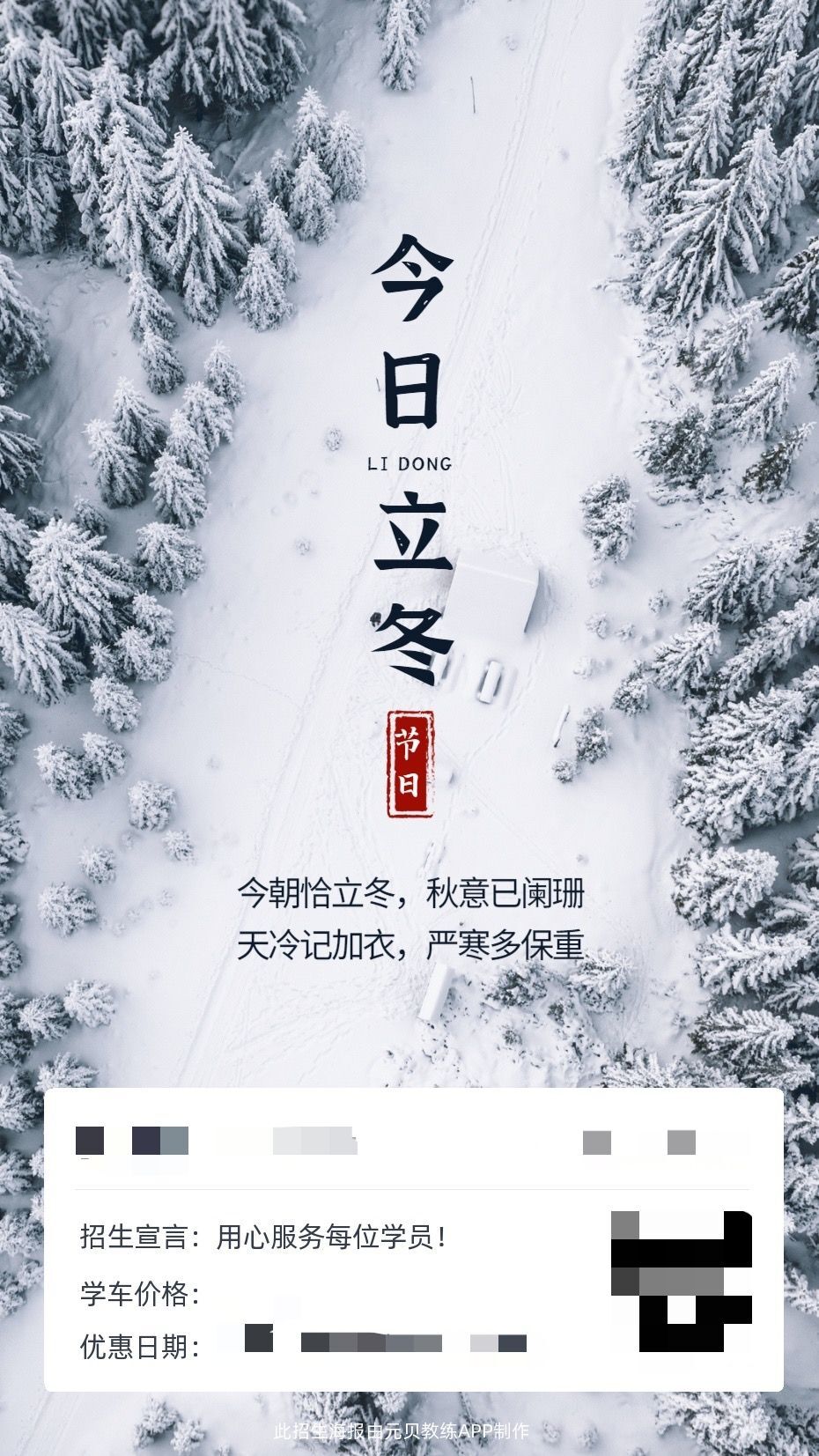 元贝教练app为广大教练定制了招生海报
