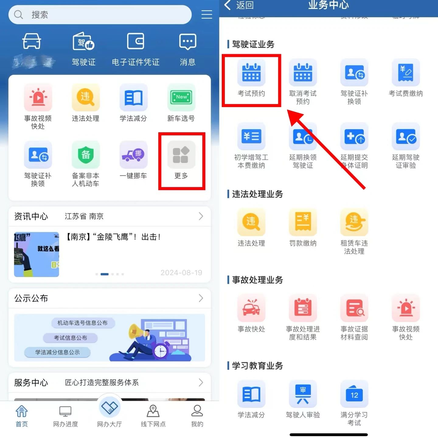学员可以下载“交管12123”手机app ,然后注册登录个人账号 → 更多 → 业务中心 → 驾驶证业务 → 考试预约。