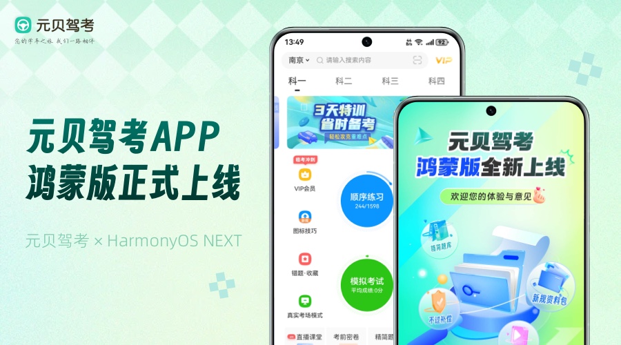 作为优质的鸿蒙生态伙伴、广大学员信赖的驾考学习平台,元贝驾考app华为鸿蒙版已全面适配harmonyos next 华为原生鸿蒙系统,已成功上架harmonyos应用市场。
