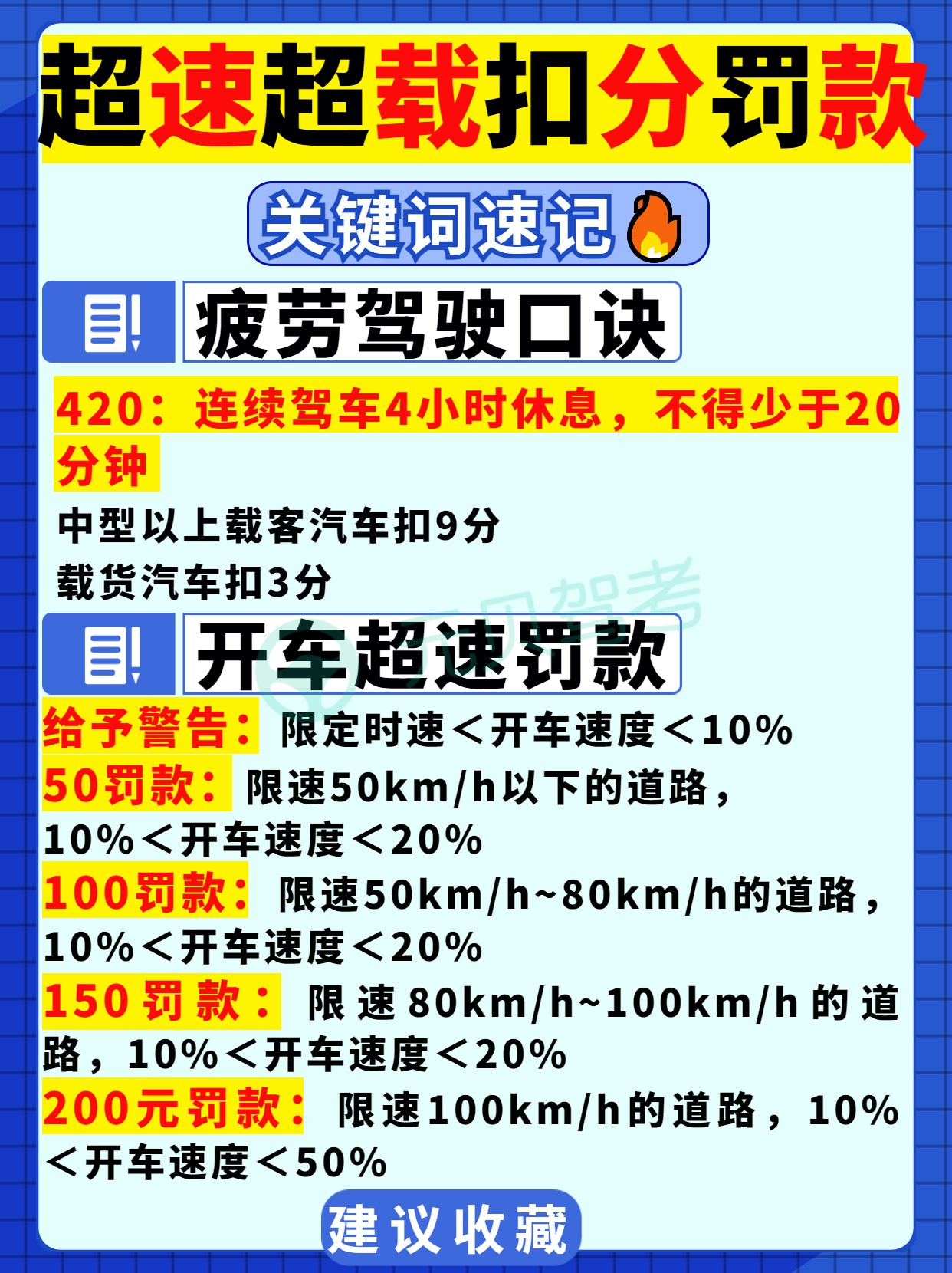 今天元贝驾考小编给大家整理了驾考新规中关于超速超载扣分罚款关键词,驾考科目一重难点攻克!绝不搞混!看这1篇笔记4张图就够了!