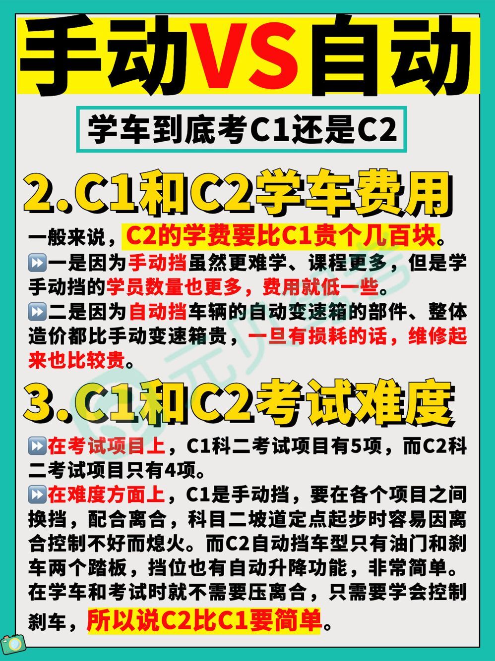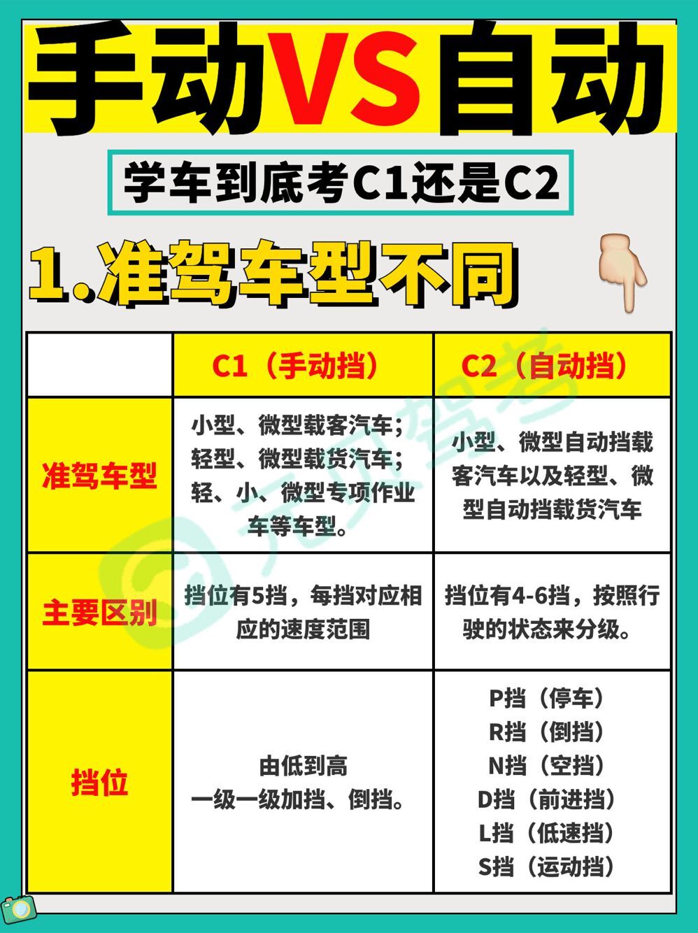 准备报名驾考的学车一族,内心势必会纠结一番:我到底是报c1还是c2⁉️目前自动挡汽车及新能源汽车得到广泛的普及!报考c2的学员占比也逐年递增,但是学员们不妨先跟着贝贝了解一下他俩的主要区别,再做定夺。