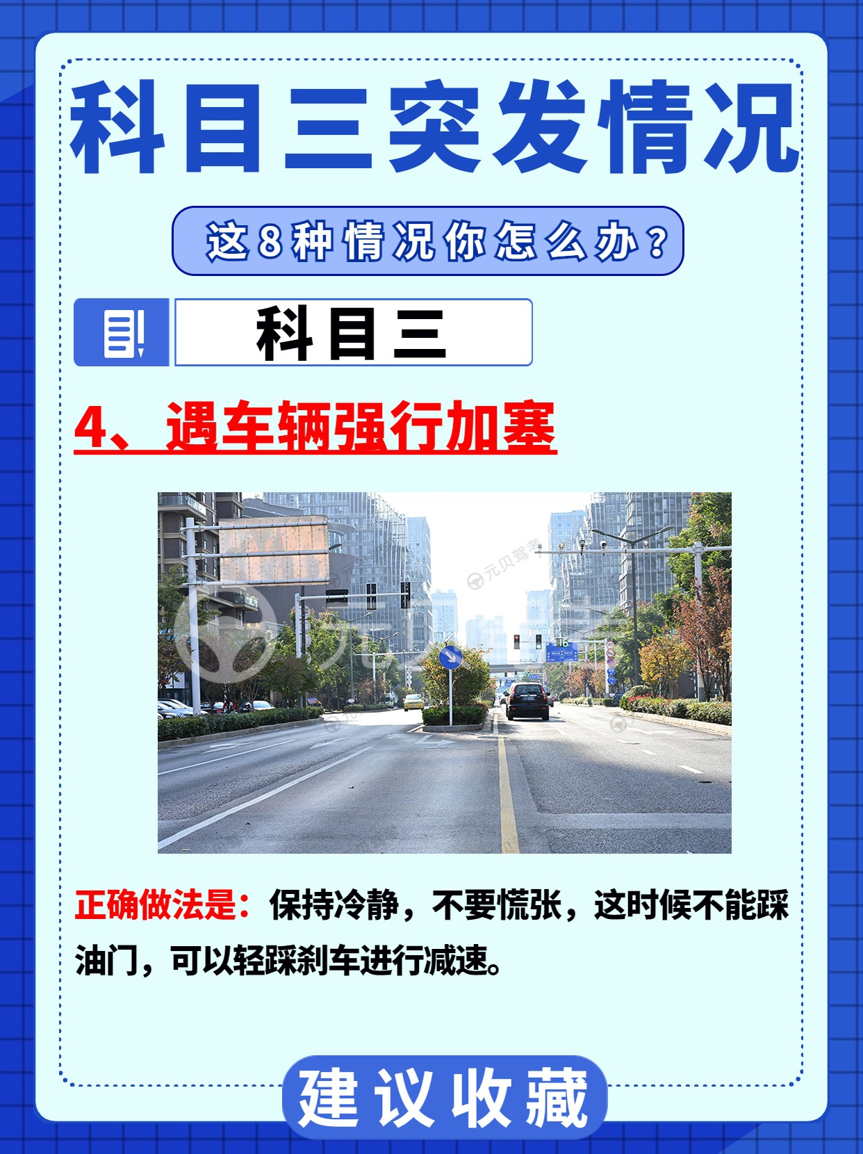 科目三路考,难保不会遇到一些紧急的突发状况,心态不稳或者不熟练的学员容易慌乱,导致失误。在科目三考试过程中,学员可能会遇到以下6种突发状况,为了避免这种情况发生,元贝驾考小编整理了几个技巧,给大家分享一下。