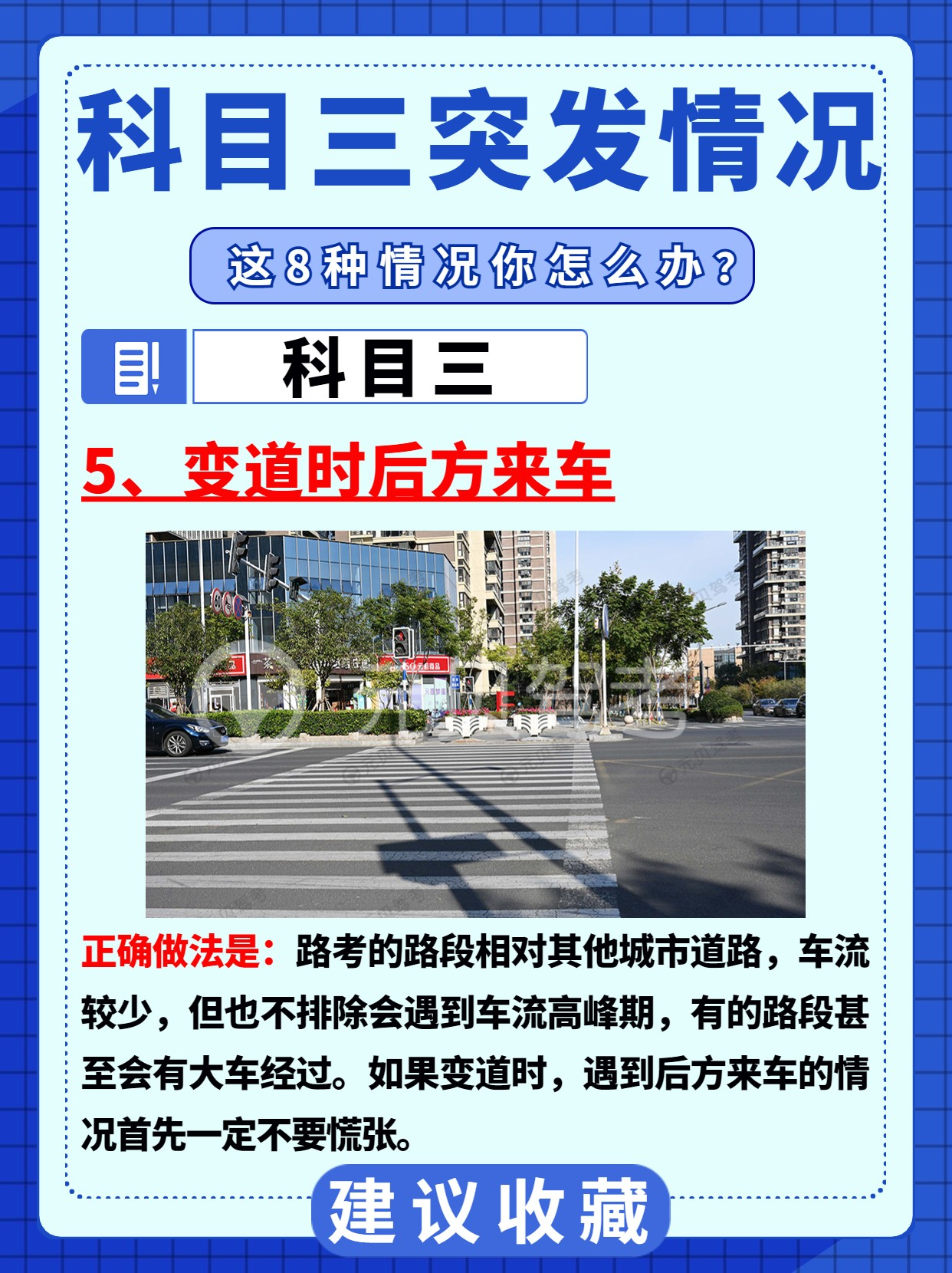 路考的路段相对其他城市道路,车流较少,但也不排除会遇到车流高峰期,有的路段甚至会有大车经过。如果变道时,遇到后方来车的情况首先一定不要慌张。