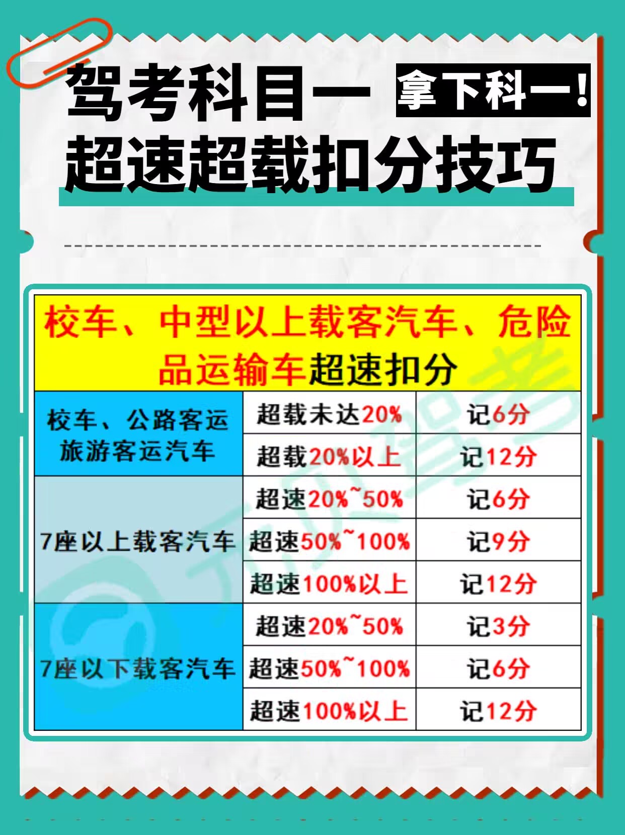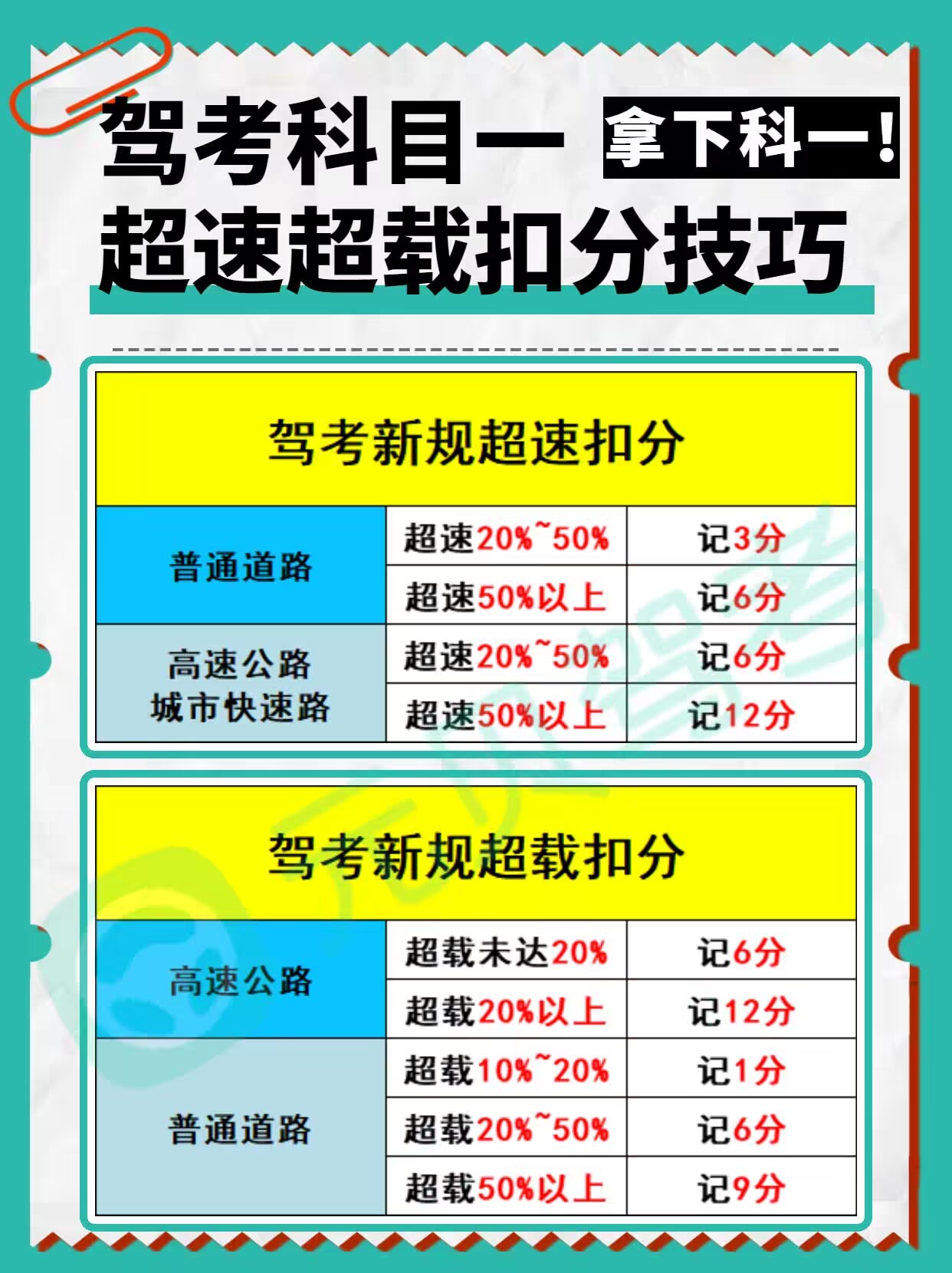 驾考科一科四理论考试其实有很多答题技巧,今天元贝驾考就给大家分享2张驾考技巧1分、3分、6分、9分、12分,超速到底扣几分?看完清晰明了,顺利拿下科目一噢~