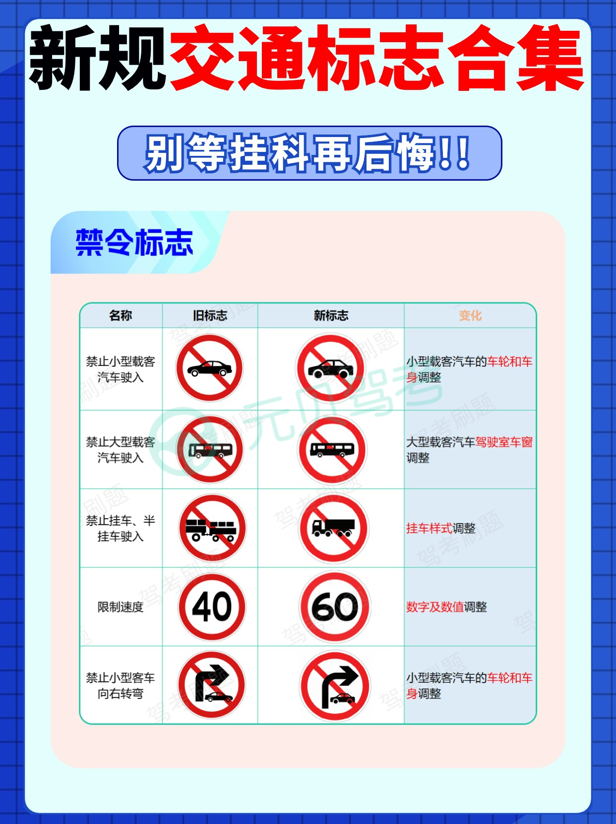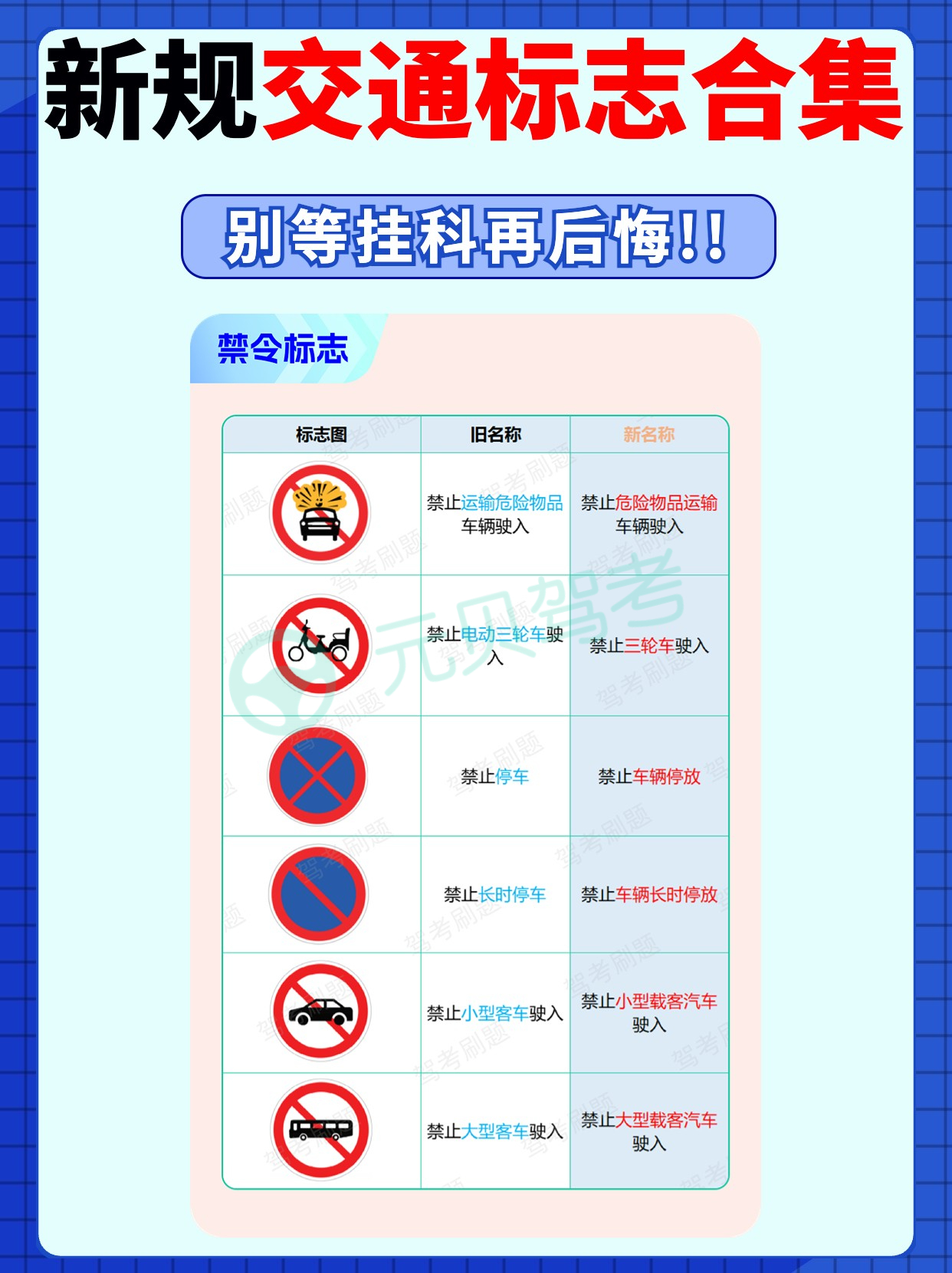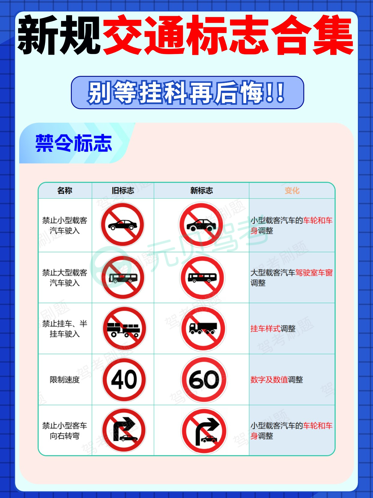 在科目一考试中,道路交通标志是考试题当中的常考的题目,面对这些五花八门极易混淆的交通标志,大家一定要多看,多了解。学会看这些交通标志不仅考试能加分,对于以后开车上路也能少扣分,少罚款!一起来看下吧!
