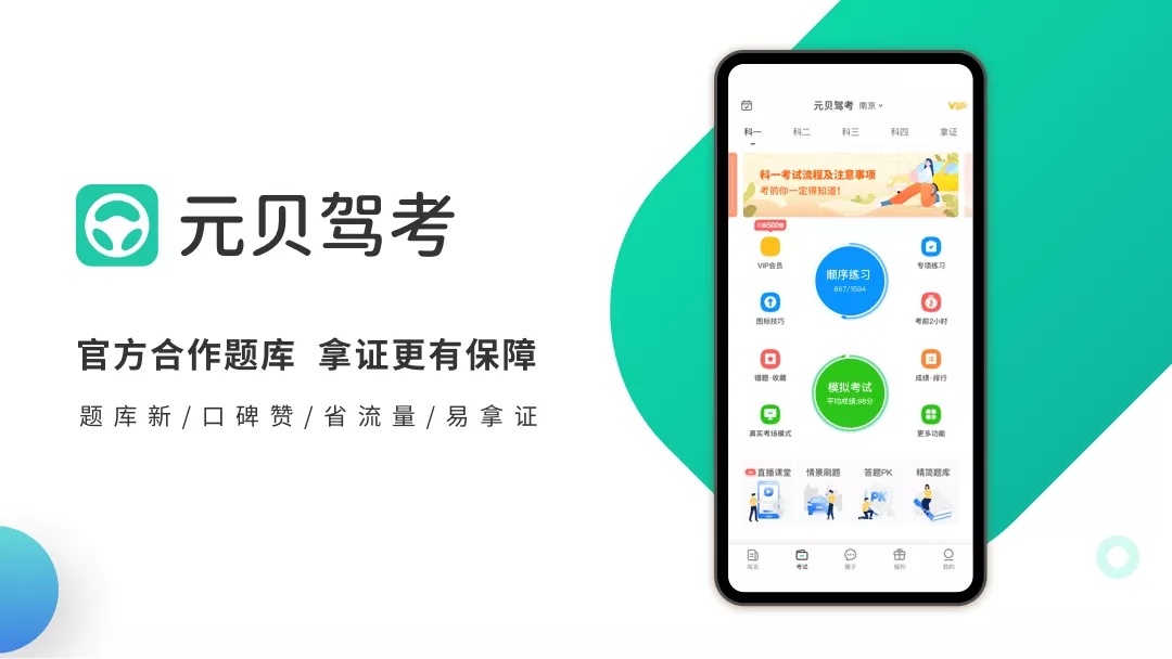在产品不断的升级迭代中,精简核心考练功能,用户打开元贝驾考便可直接练习科一科四真题题库,进行全真模拟考试。全真模拟考试采用新交规评分标准,匹配各地理论考卷出题规则,每道题目均有名师教练精编解析,可满足学员考前集中训练、熟悉交规的学车需要。