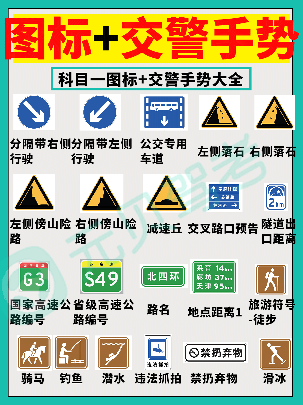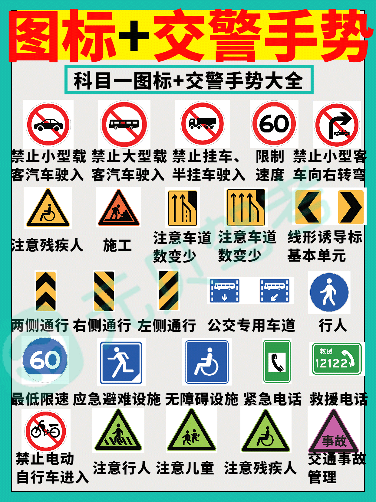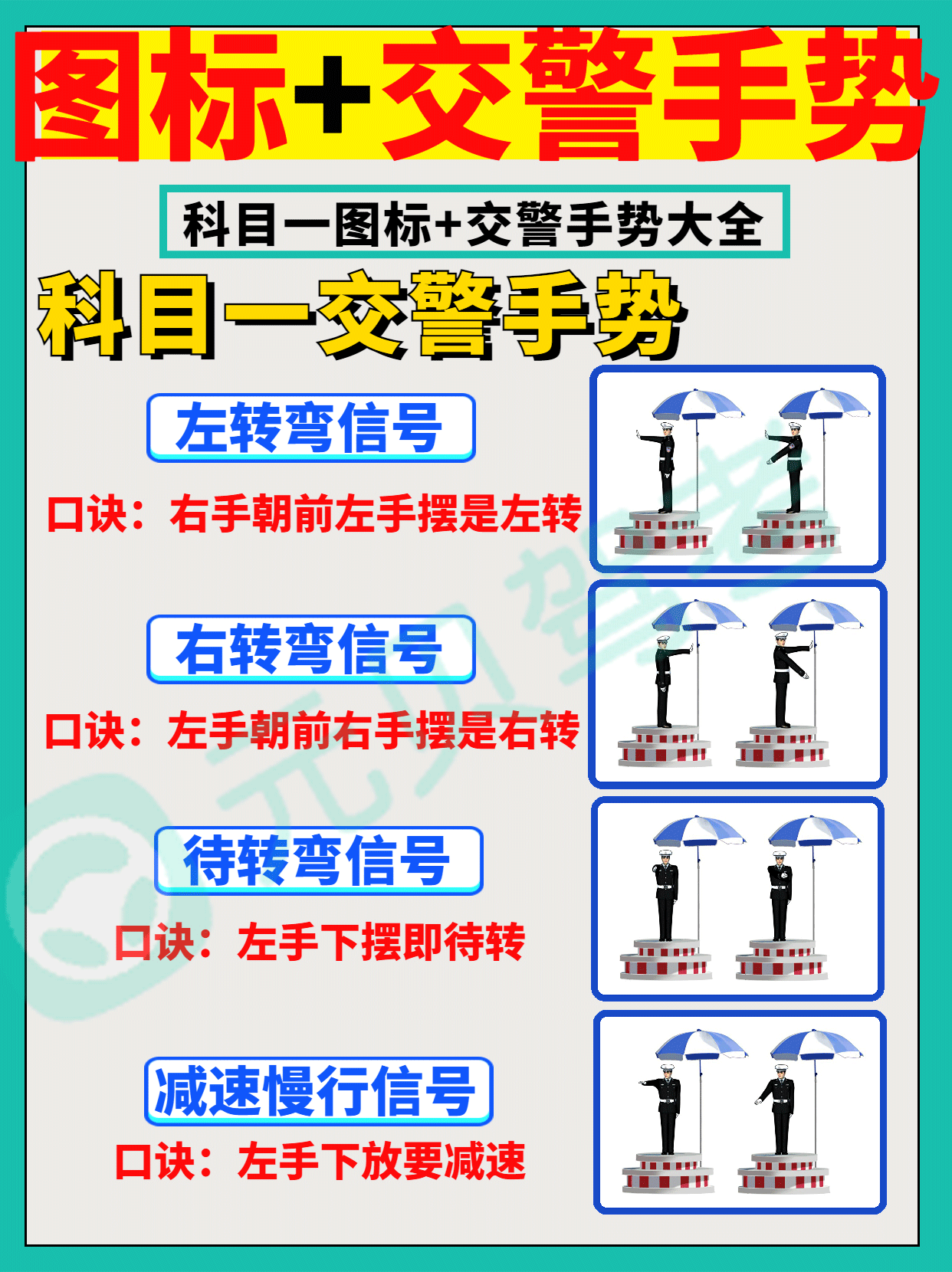 学车考驾照,科目一科目四交警手势和图标题是考试的一大难点,对于新手司机来说,开车上路看不懂交警手势和图标的含义也非常尴尬,明明让你右转,你却左转了......