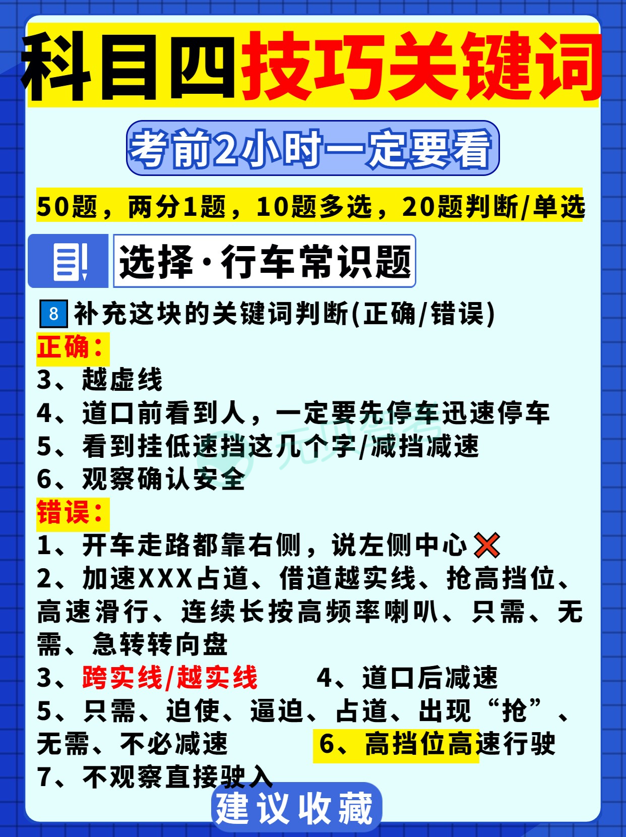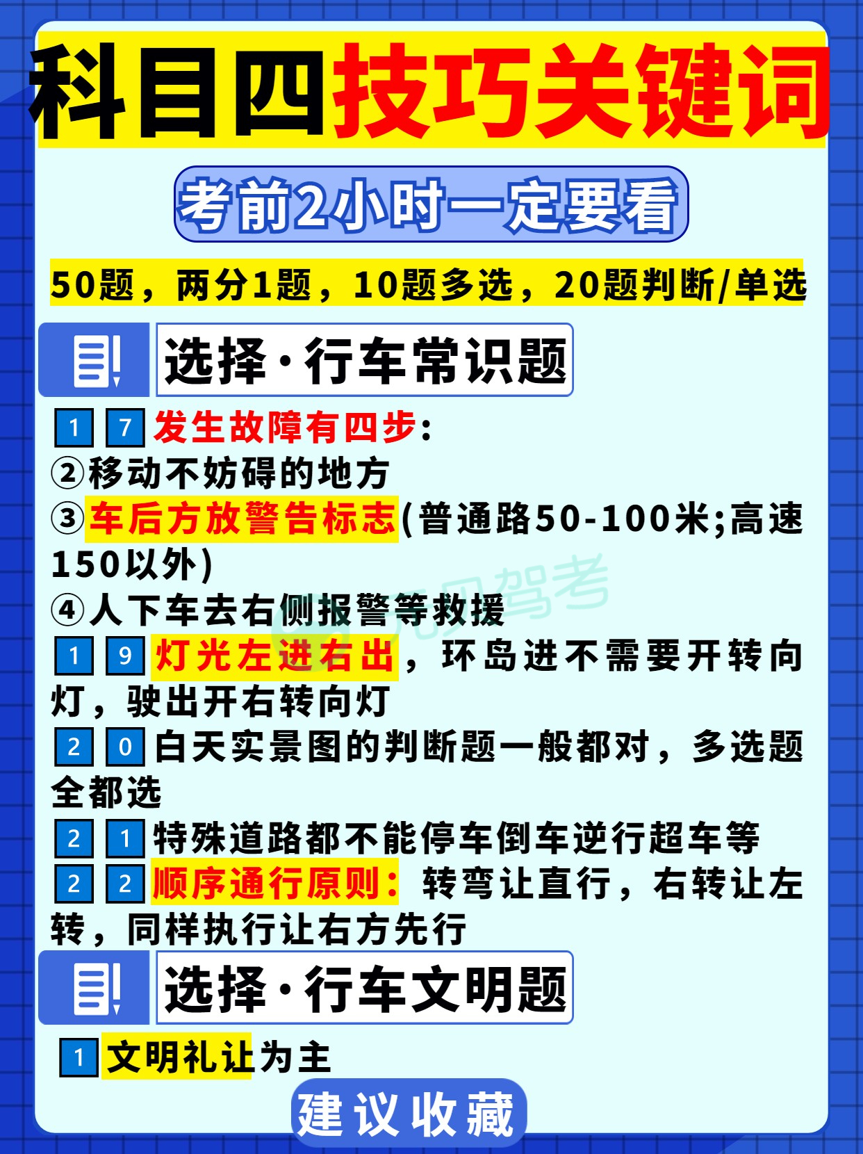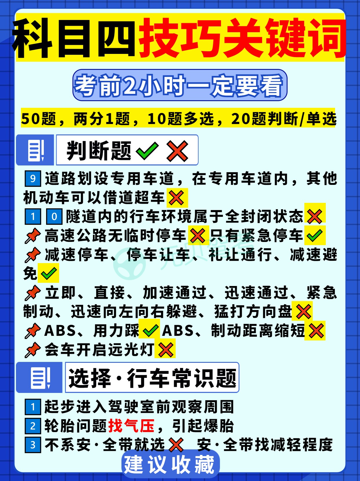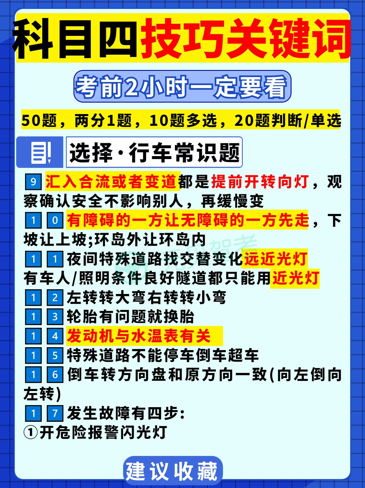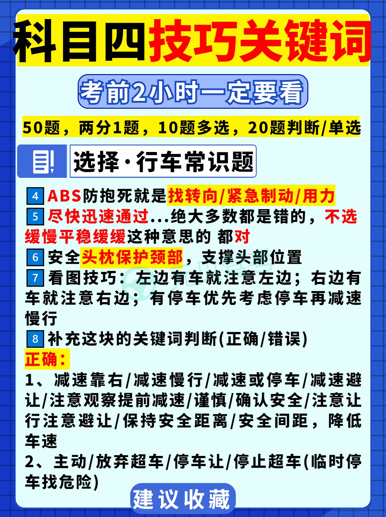 科目四技巧速记来了!考前2小时一定要看!-pa8九游会
