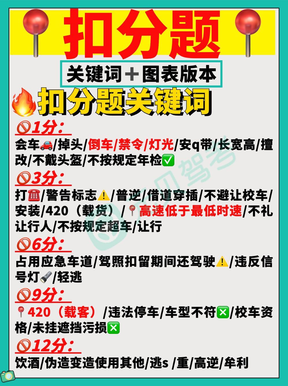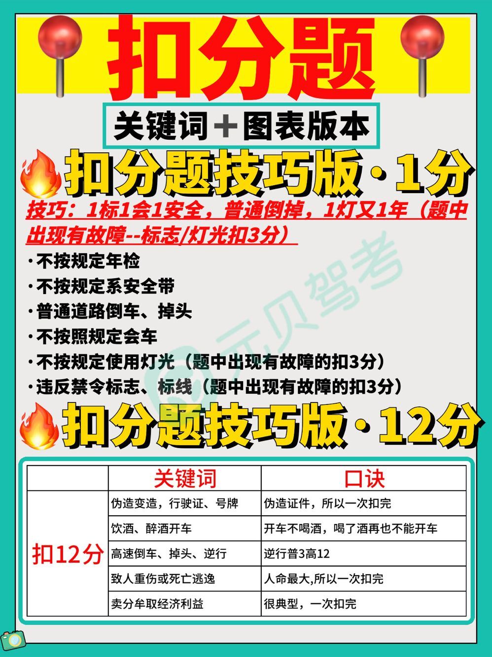 今天给大家整理驾考新规科目一扣分题关键词版本 记忆窍门,希望大家可以花上1分钟耐心看完!