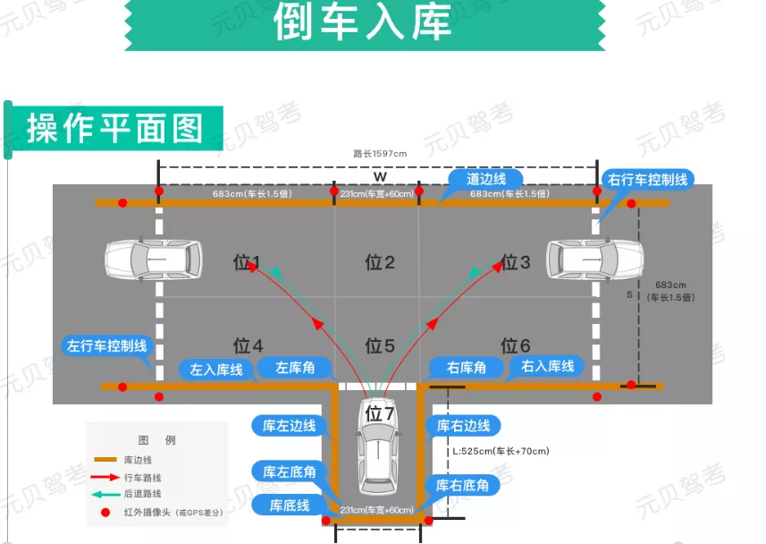 科目二倒车入库6个点给大家整理如下(以右倒库为例):