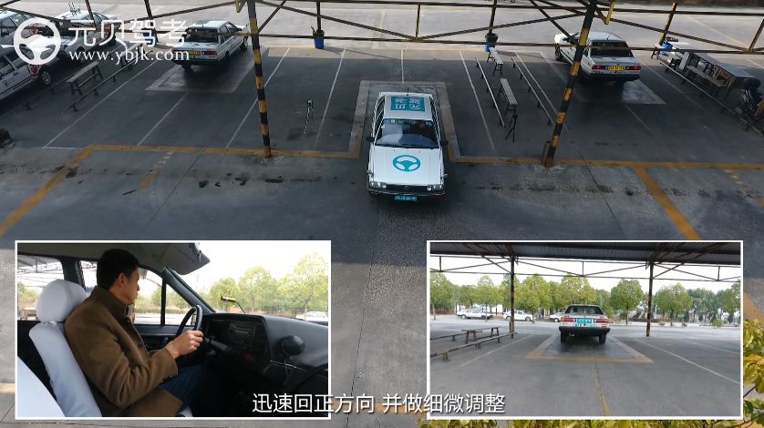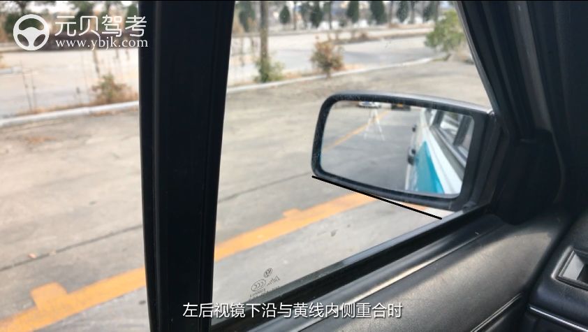 点位④:看右后视镜,当车身与库边线平行时迅速回正,左右都需观察,看哪边宽可以往哪边打做出微调;