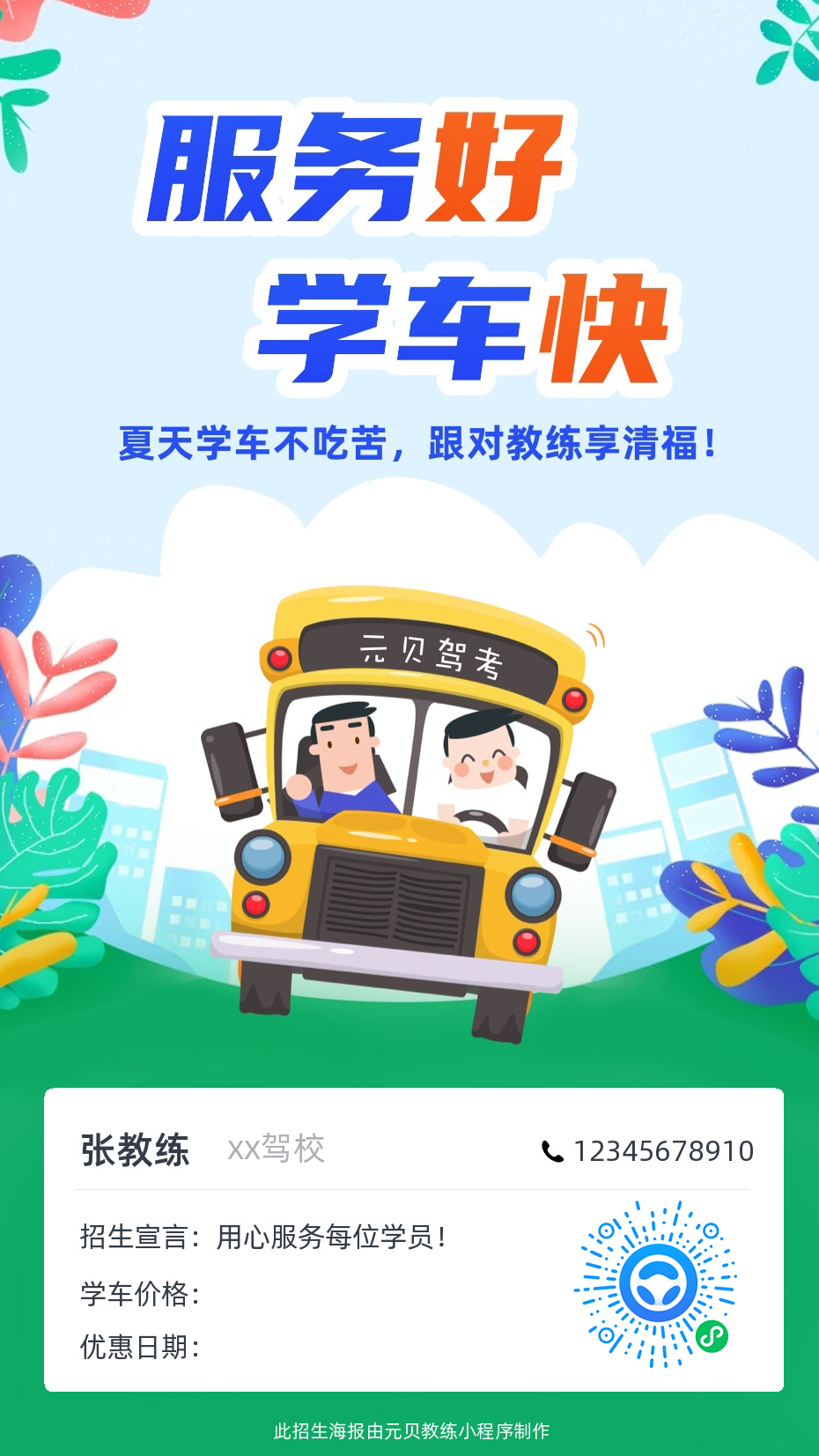 元贝教练app为广大教练定制了初夏学车招生海报
