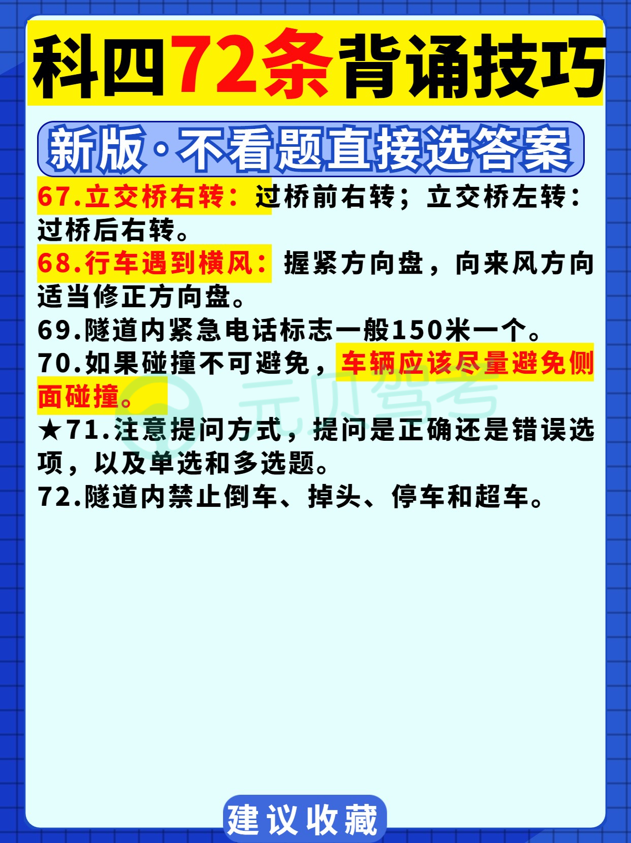下一篇:驾考科目一新规易错题合集!备考学员速看!