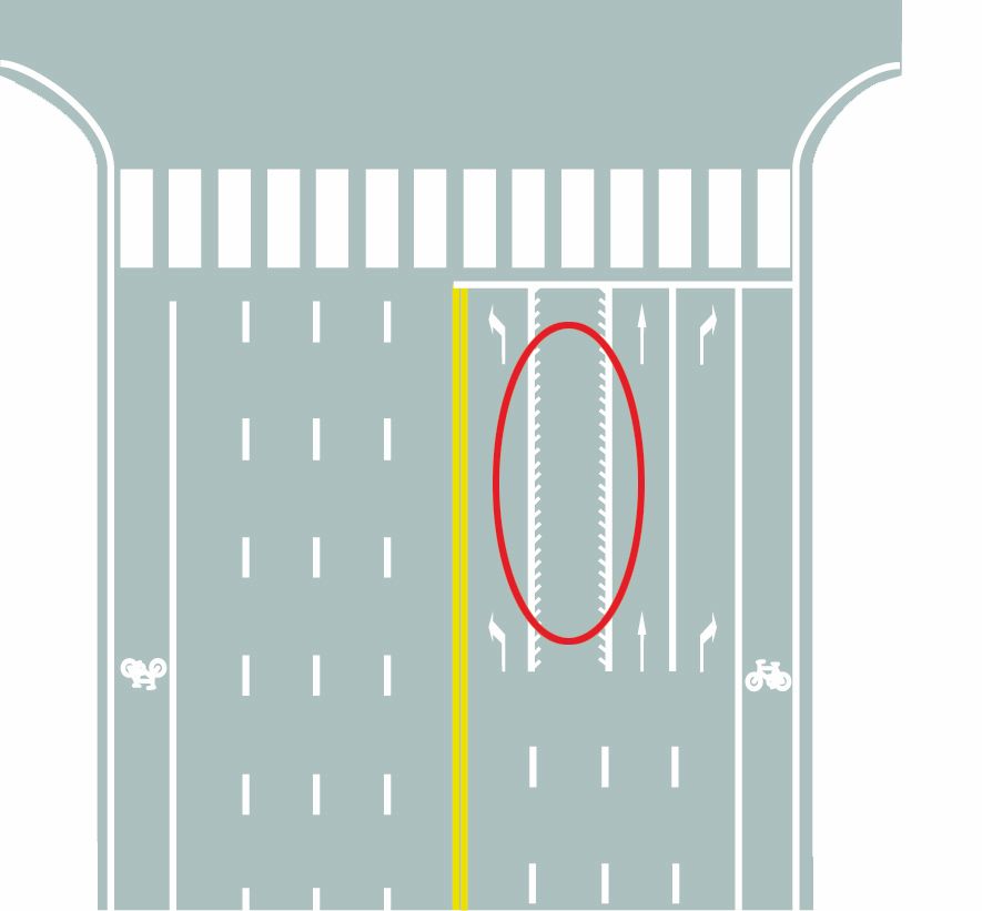 题目四:图中圈内的锯齿状白色实线是什么标线?