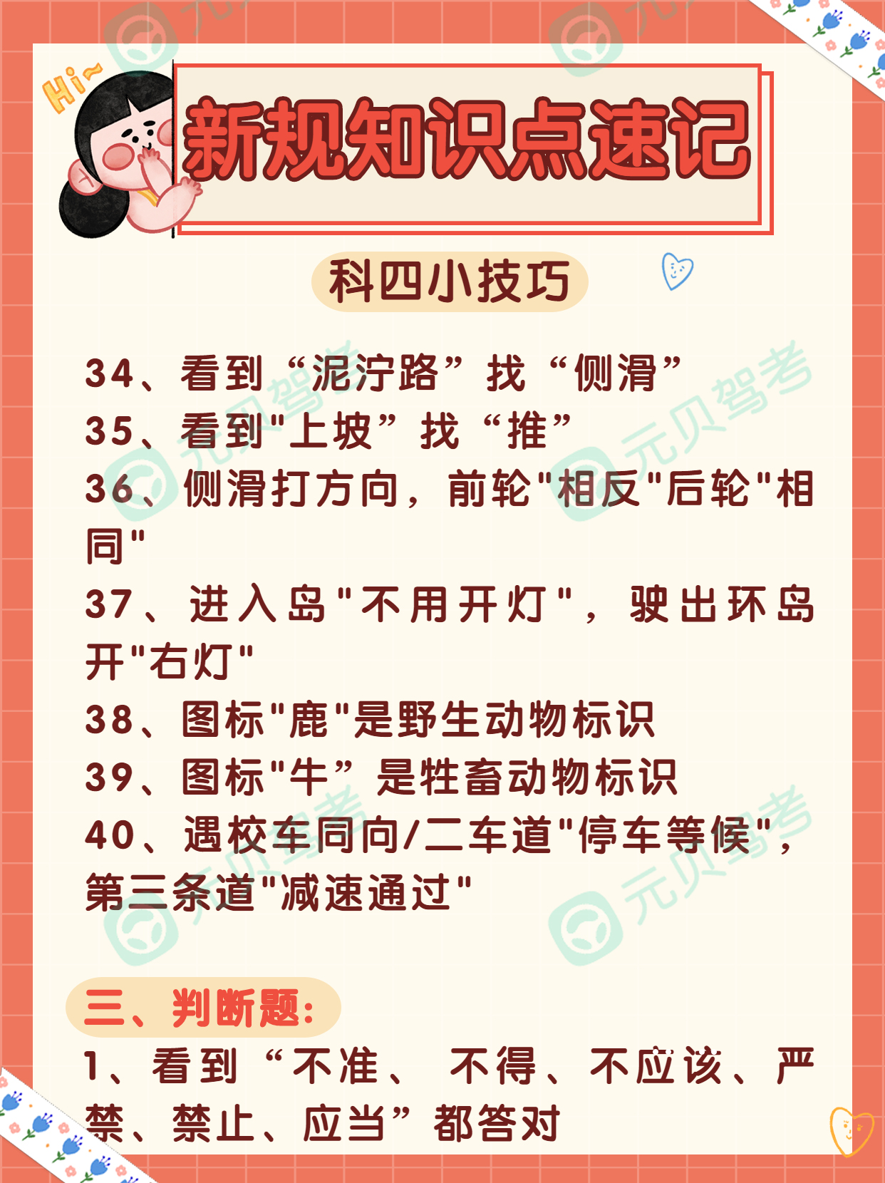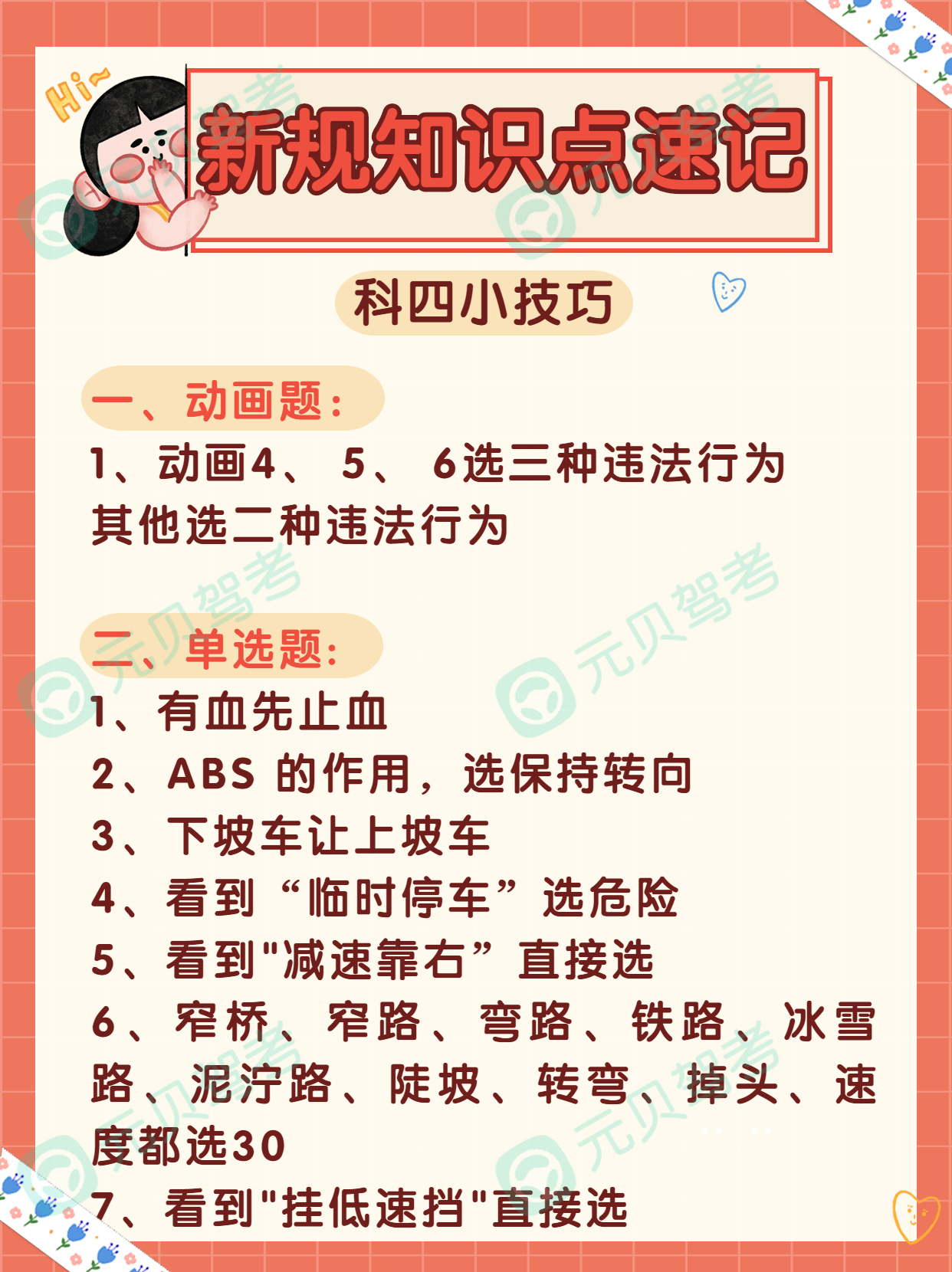 元贝驾考小编给大家总结了83条驾考科目四做题技巧,将科目四题目分成动画题、单选题、判断题以及多选题。内容超实用!想效率过科目四真的不难!
