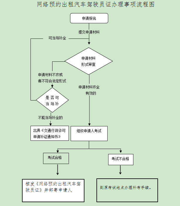第四步:考试合格的由市交通运输局核发《网络预约出租汽车驾驶员证》并邮寄申请人;考试不合格的,申请人可到原考试地点办理补考手续。