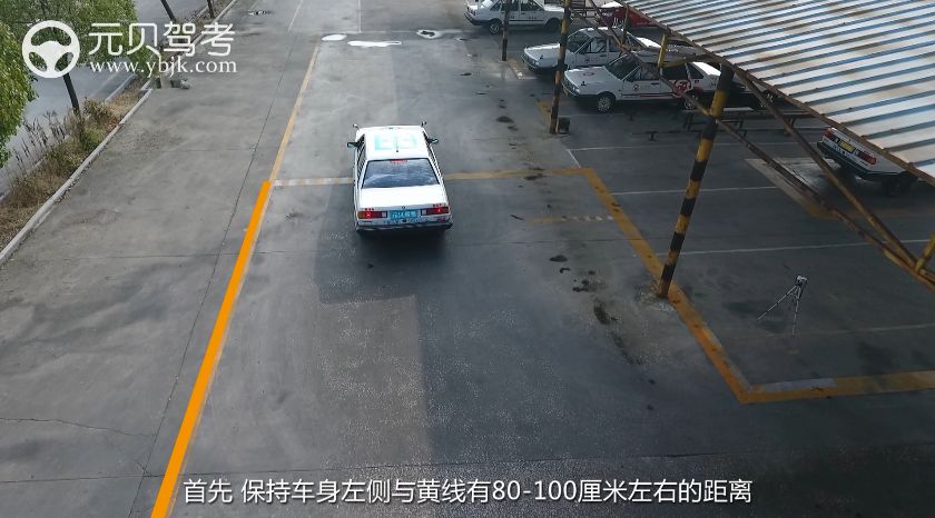 第一步:驶入考试区域,调整车辆距左边线约1.2米的距离,继续向前,左后视镜下沿明显超过起点线约一个线宽的距离,踩离合踩刹车停车 ;