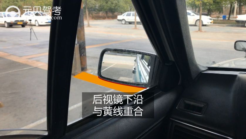 第二步:挂倒挡,换抬离合,倒车,当左后视镜下沿完全盖住起点线,向右迅速打满;