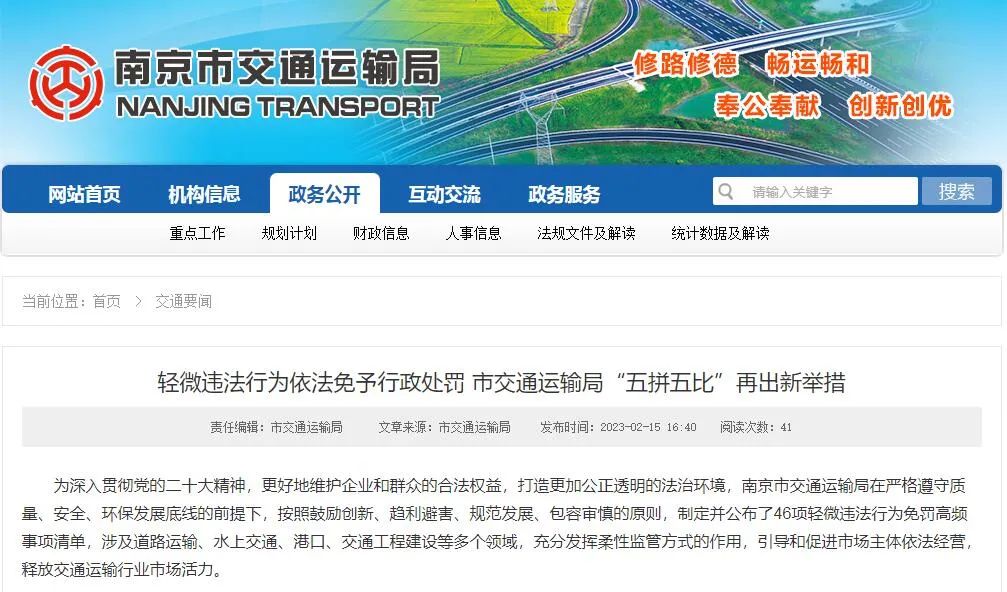 制定《南京市交通运输轻微违法行为依法免予处罚高频事项清单(试行)》,是健全完善南京交通运输行政执法规范化长效机制建设,坚持执法为民、服务发展,推进法治政府部门建设的重要举措,是坚持行政处罚宽严相济,统筹执法的“力度”与“温度”的具体实践。
