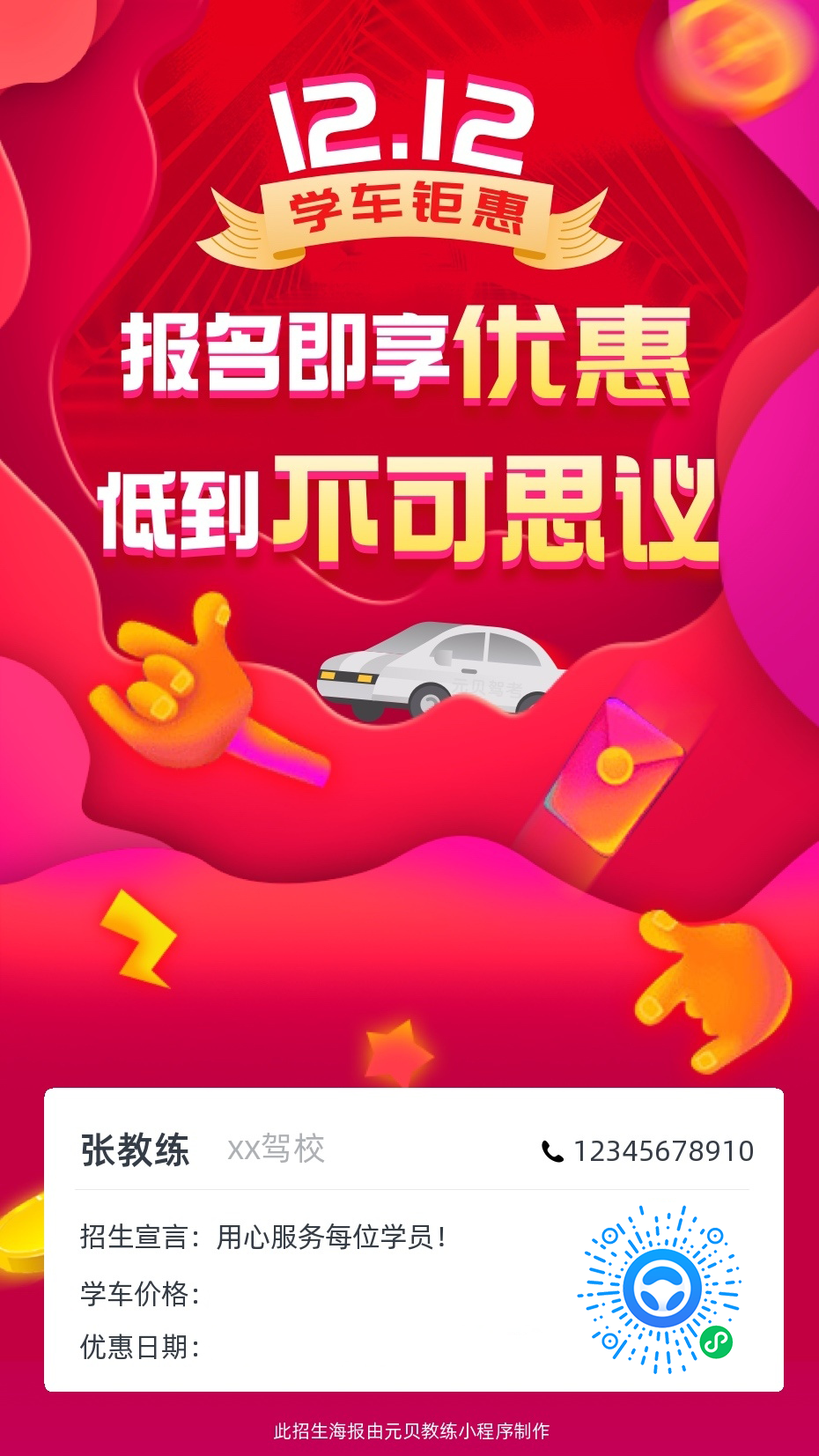 元贝教练app为广大教练定制了双12主题招生海报
