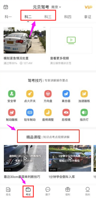 此外,在科目二/三考试页面底部,也直接有精品课程,进入任一视频,即可全部浏览啦!