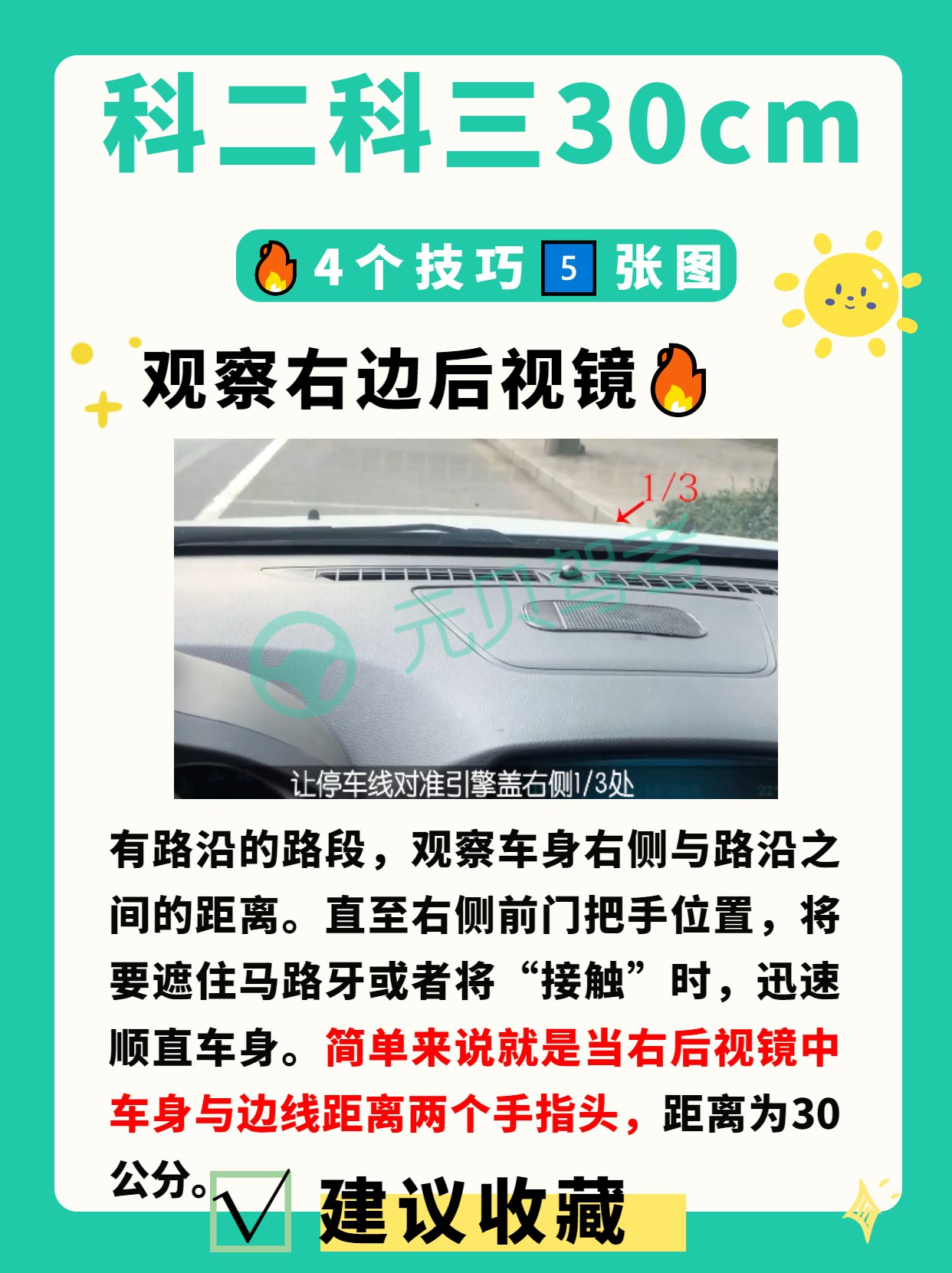 对于科二科三学员来说,如何与边线保持30厘米的距离,是比较难的事情,不是谁都能说出那句“我的眼睛就是尺”,今天遥不可及小编带大家看看如何才能做到与边线距离保持30cm的距离。