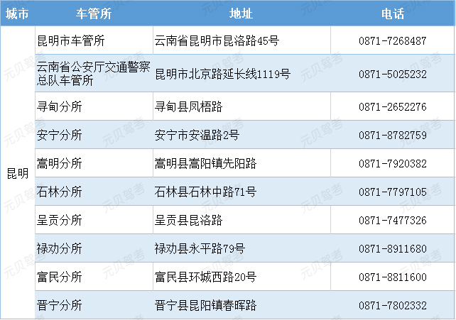 元贝驾考小编为昆明市驾校学员整理了当地车辆管理所地址、办公电话,让您不费劲效率查询! 更多车管所资讯、交管12123操作指南,免费领取。