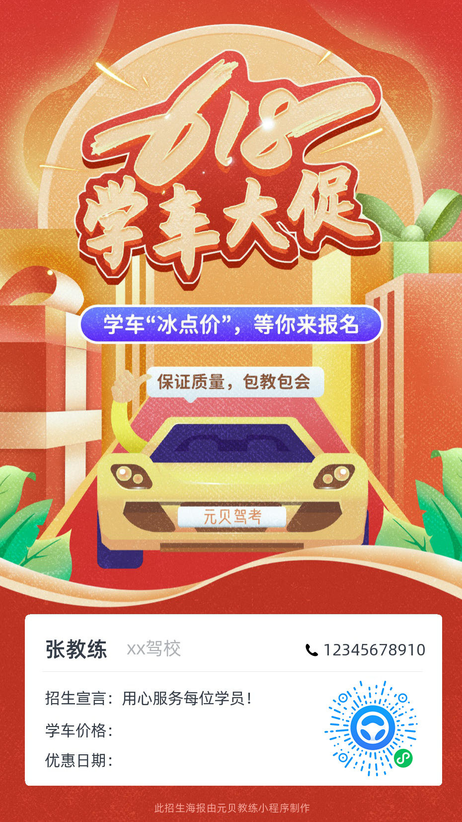 小提醒:元贝教练app和小程序同步上线了热门招生海报噢~