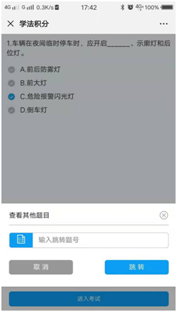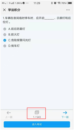 点击【上一题】【下一题】可对交通法逐条学习,点击【答题卡】,也可输入题号跳转题号学习