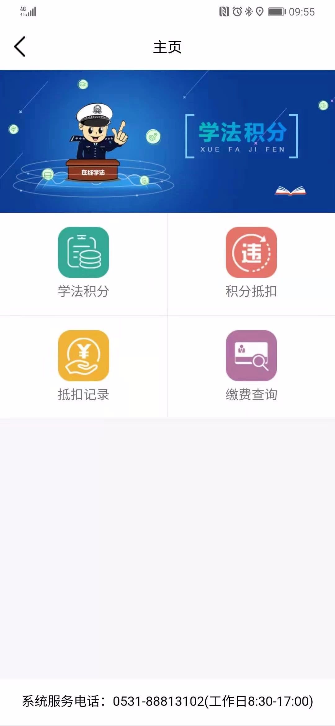 用户点击【学法积分】,进入学法积分系统pa8九游会首页