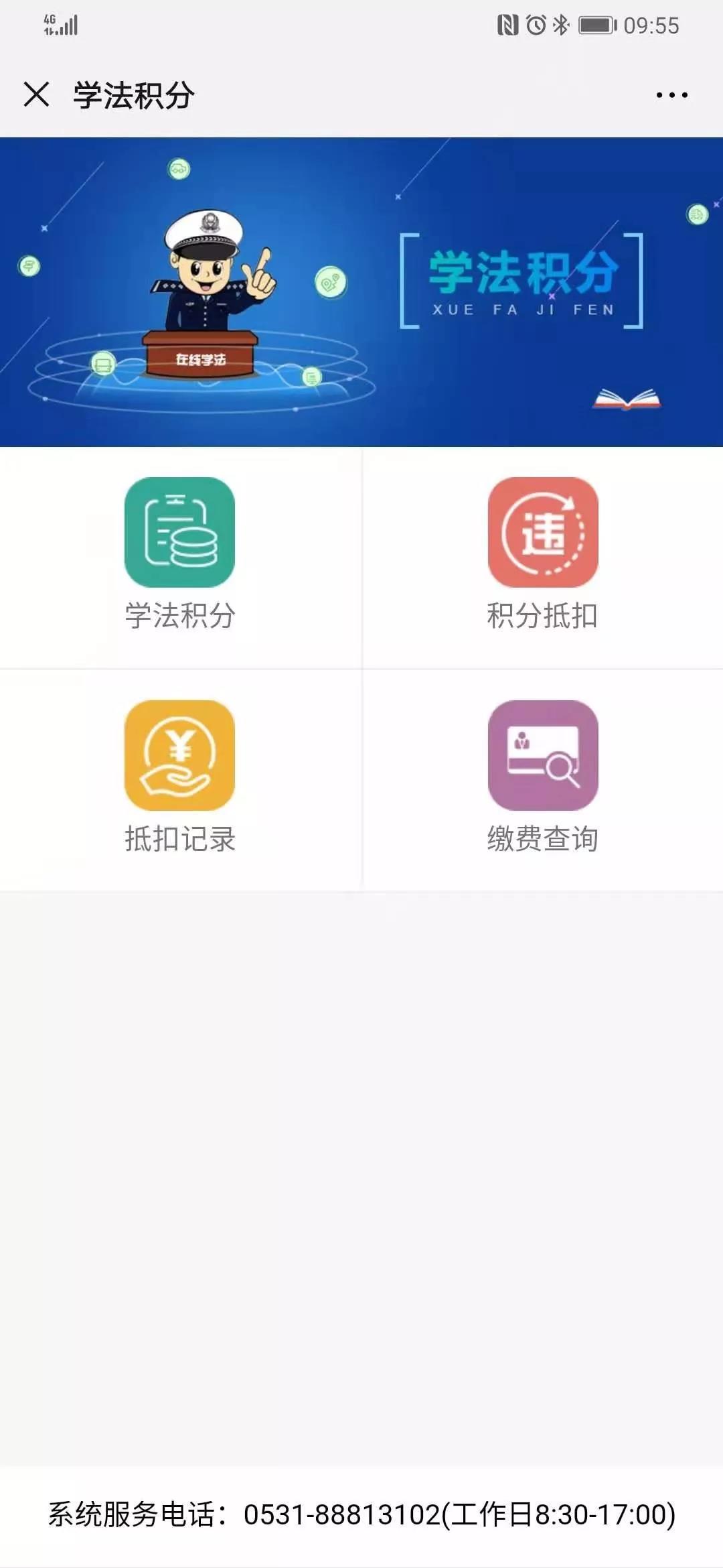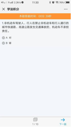 点击【学法积分】,进入交通法学习页面