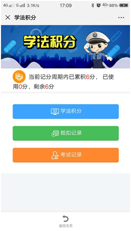 点击学法积分中的【抵扣记录】可查看通过本系统处理违法时抵扣的记录