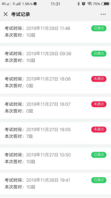点击【考试记录】可查看学法积分考试记录及结果