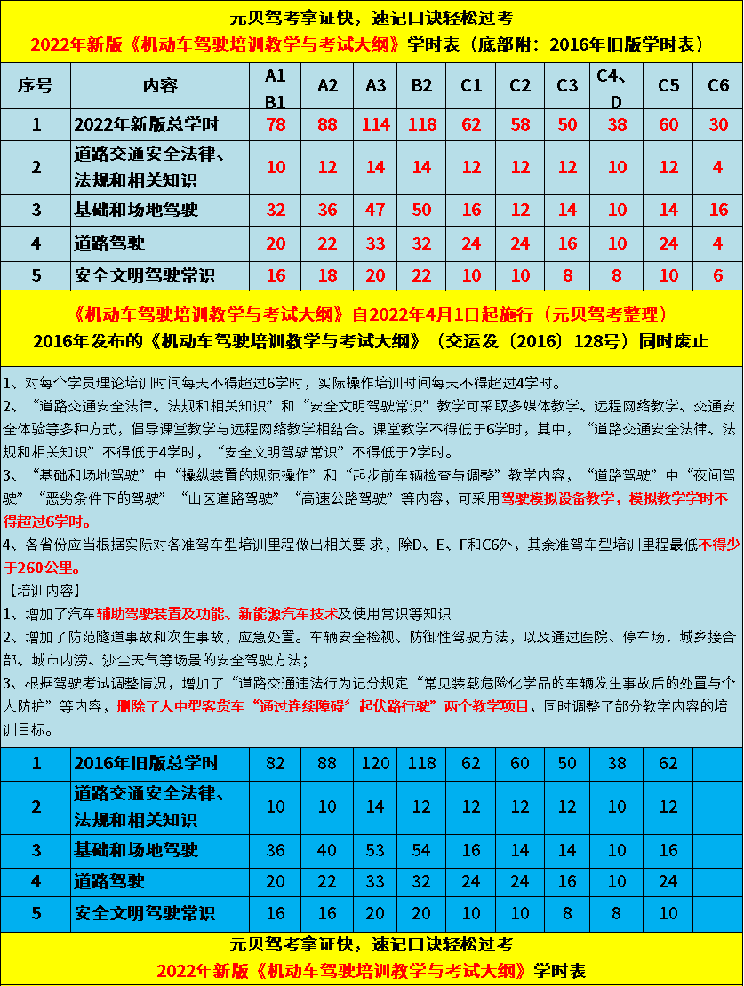 最后,元贝驾考给大家附上根据新版《机动车驾驶培训教学与考试大纲》整理的学时表噢~