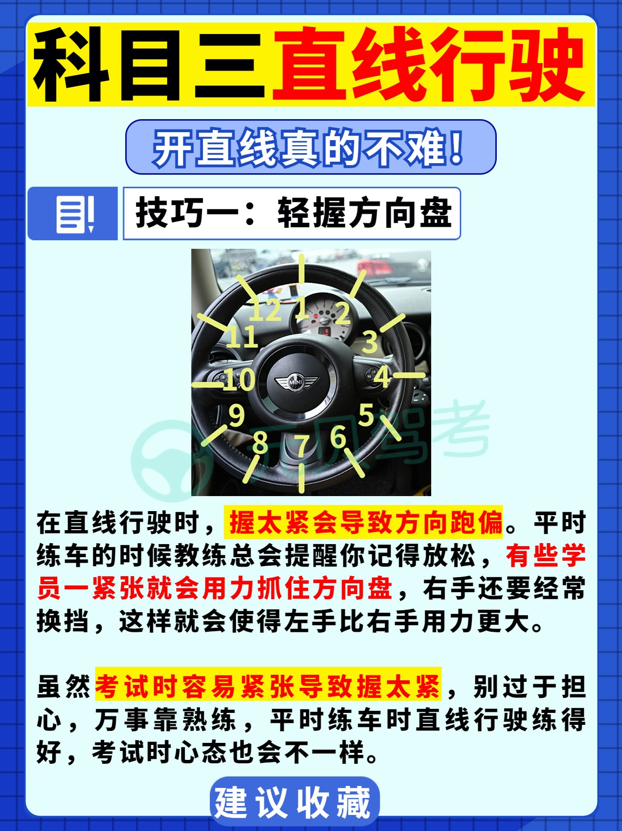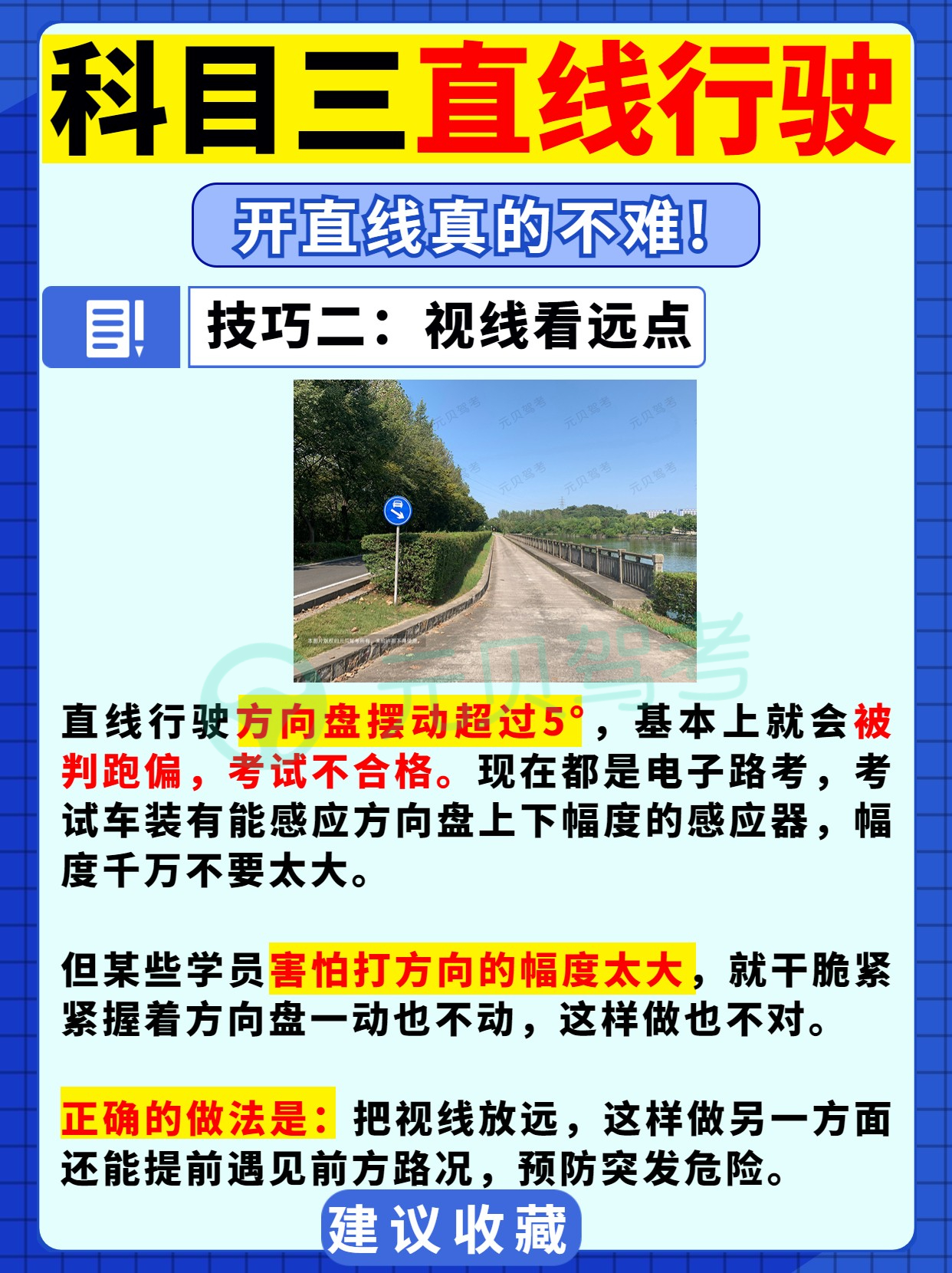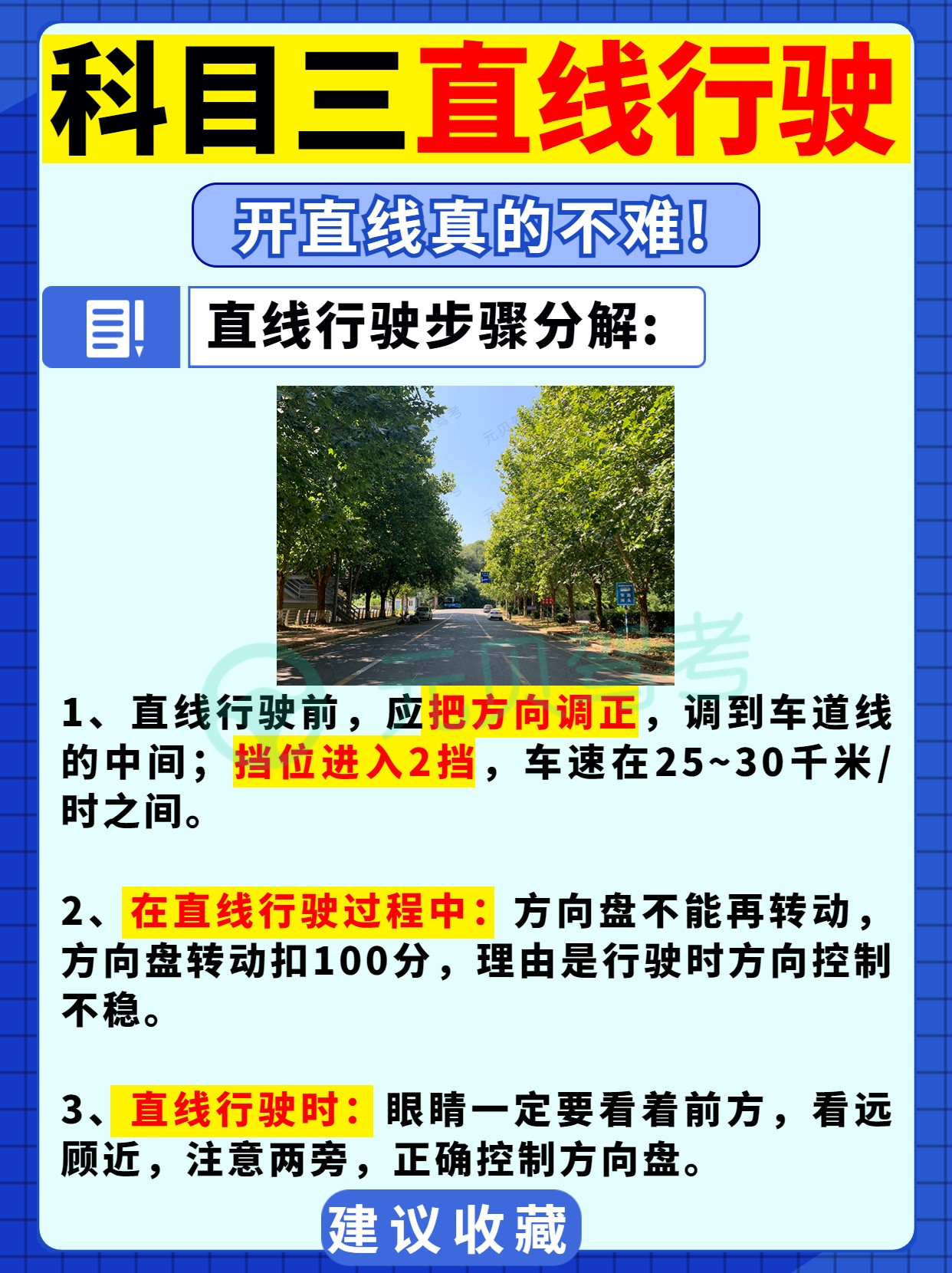 驾考科目三直线行驶其实并不难,今天整理了直线行驶不跑偏3大技巧 直线行驶步骤分解: