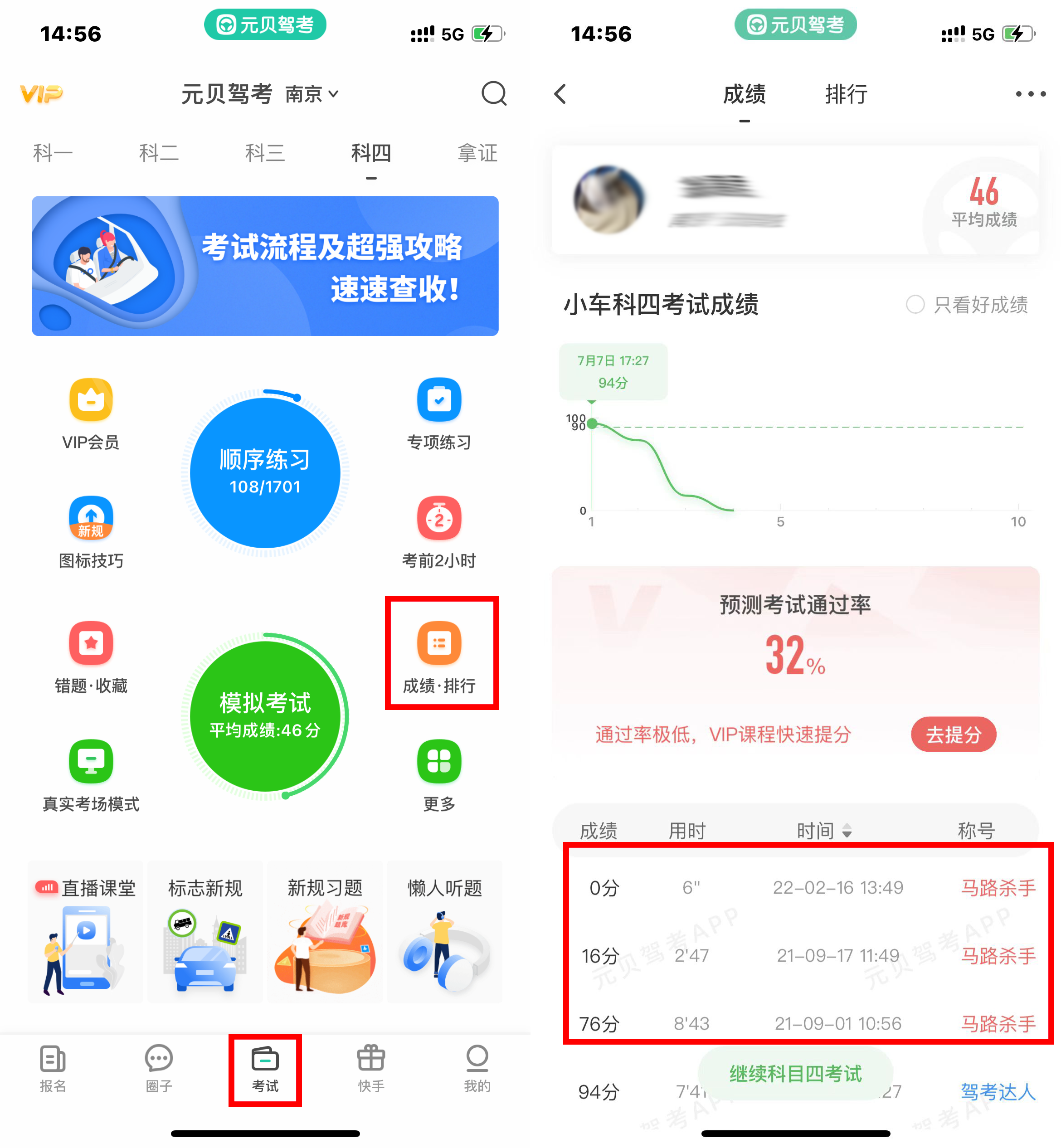 1.在考试页面,点击进入成绩·排行;