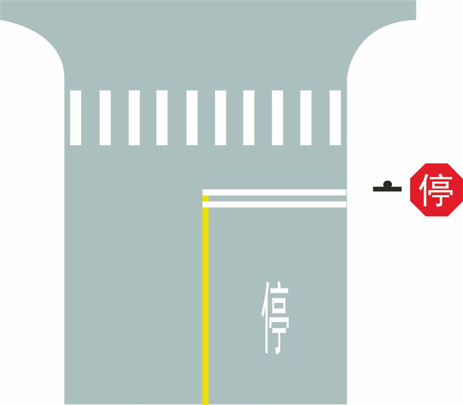 标志含义:道路右侧有停车让行标志,因此路中两条实线是停车让行线。