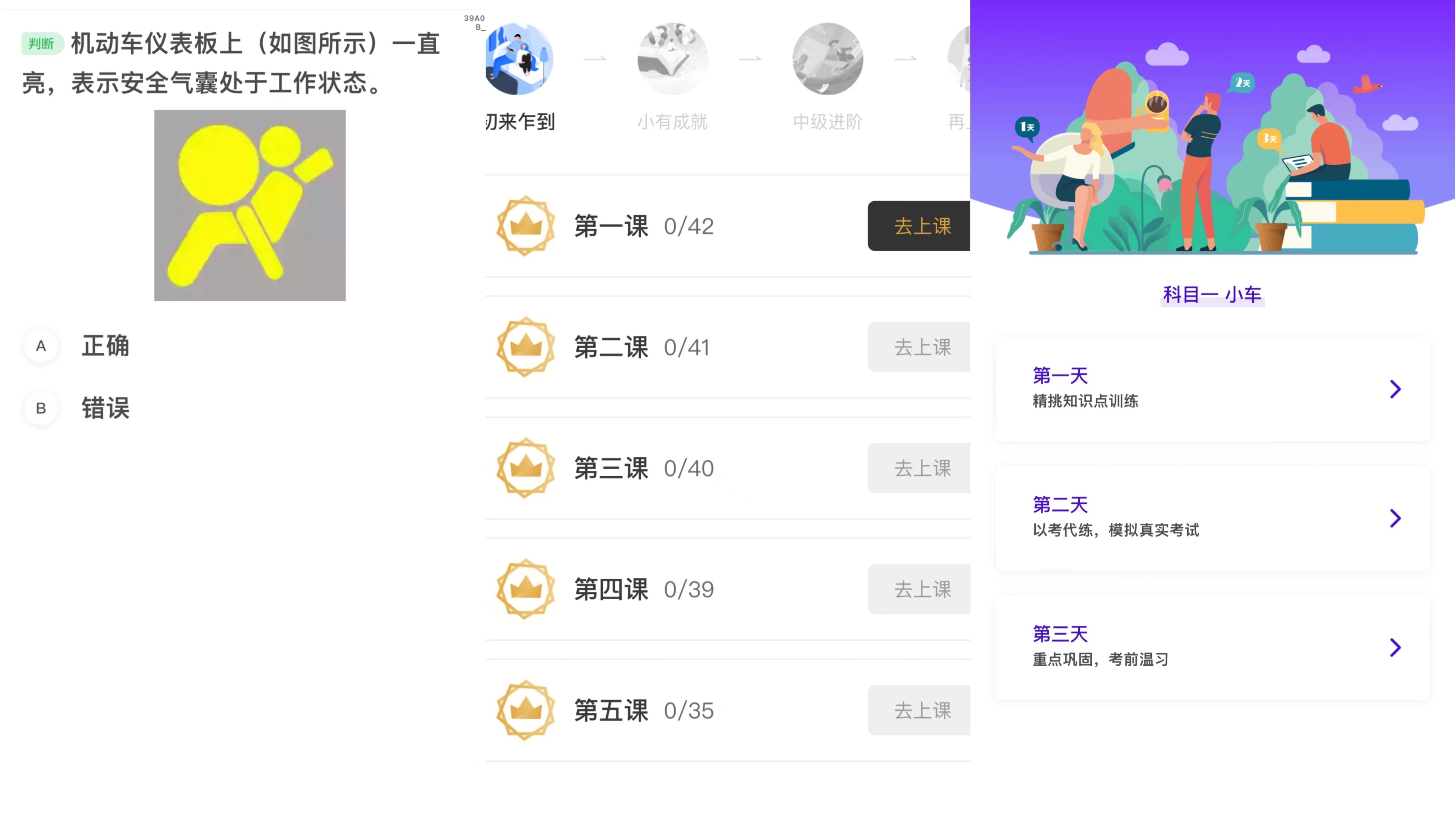 如果担心在驾校的时候上车学习时间太短,自己掌握不够全面的话,可以在元贝驾考app上开通vip,使用功能查漏补缺、强化学习。